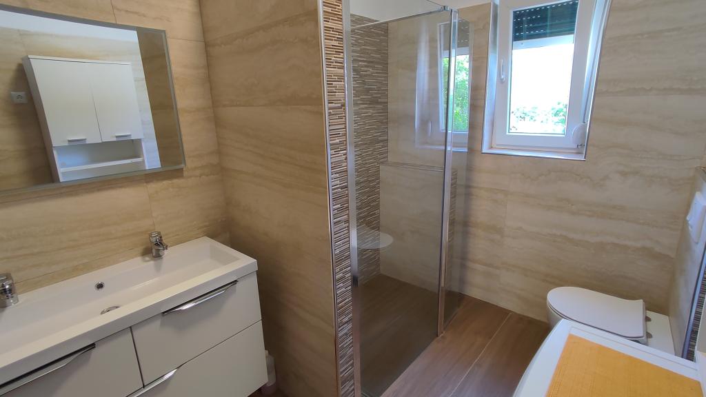 Apartmán Andrea s 3 hvězdičkami *** se nachází v klidném, turistickém, rodinném místě Bibinje nedaleko Zadaru. Moderně zařízené, plně vybavené ubytování pro 4 osoby nabízí kvalitní a příjemnou dovolenou pro celou rodinu. Prostorný byt cca 90 m2 se nachází v 1. patře rodinného domu a obsahuje: kuchyň, koupelnu, prostornou jídelnu a obývací pokoj, terasu s výhledem do zahrady, dvě ložnice (1 s balkonem) a parkování ve dvoře. K vybavení apartmánu patří: klimatizace, smart tv, internet, wifi, satelit, rádio, lednice, rychlovarná konvice, pračka, myčka... Nejbližší pláž je jen 300 m chůze od apartmánu a v blízkosti je vše, co potřebujete (centrum, obchod, restaurace, lékárna, lékař ...) Město Zadar a jeho známé památky jsou jen pár kilometrů autem.