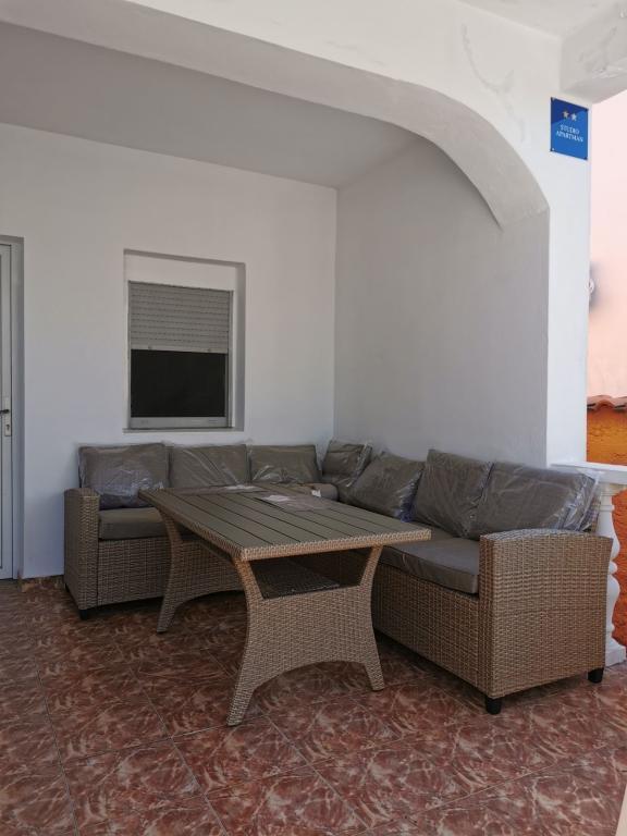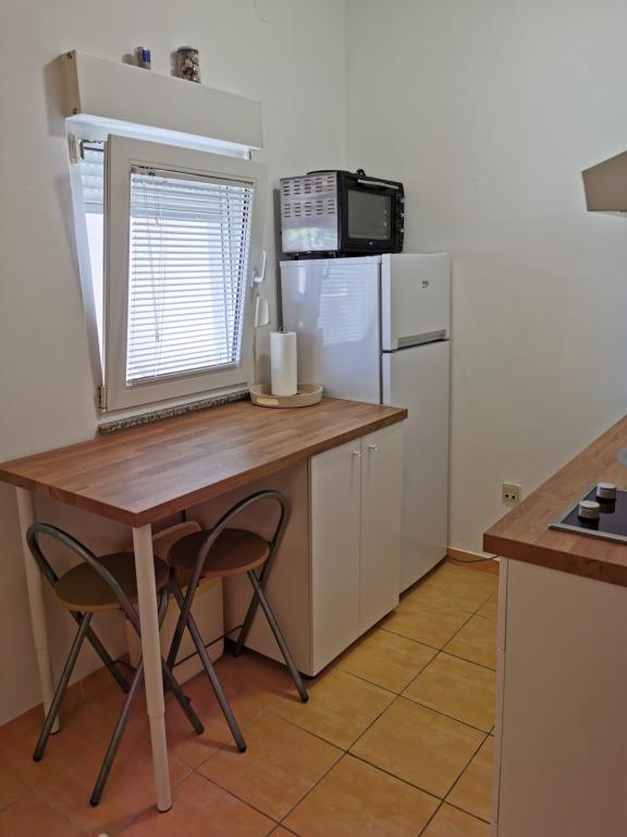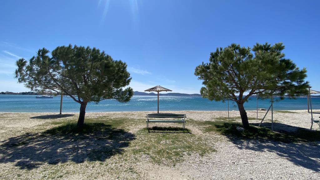 Studiový apartmán s terasou. Ubytování pro 2+1 osoby, koupelna, kuchyň, parkoviště. V blízkosti pláže (druhá řada od moře), v blízkosti městské pláže (100 m) a v blízkosti centra Bibinje s restauracemi, kavárnami.