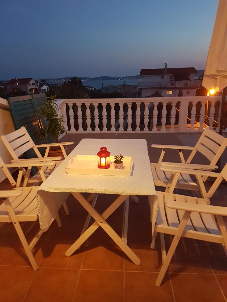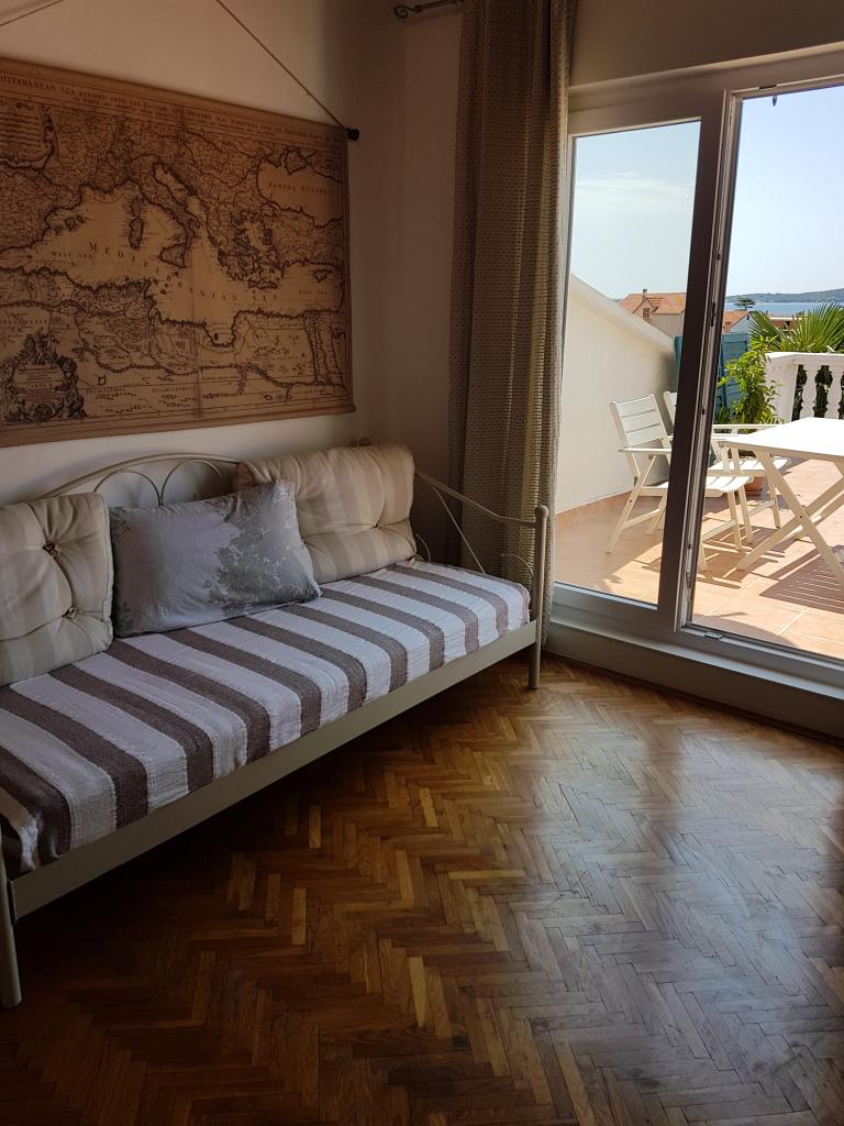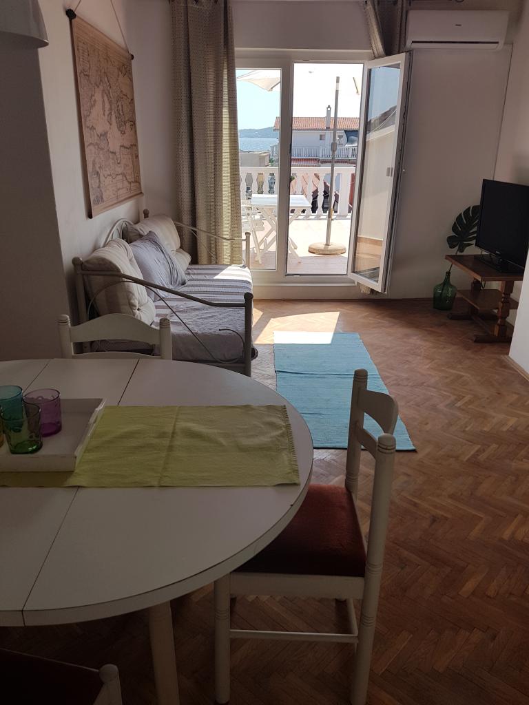 Pohodlný a prostorný byt v rodinném domě. Dvě ložnice, obývací pokoj, koupelna a WC a 3 terasy. Byt je 2 minuty chůze od veškeré občanské vybavenosti potřebné pro příjemnou dovolenou - pláž, obchod, restaurace, kavárna, fastfood, půjčovna sportovních potřeb atd. Nachází se v klidné části města a je z něj krásný výhled na moře a okolí.
