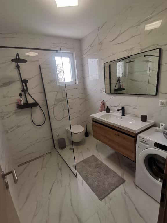 Apartmán S je moderní a nově postavený apartmán v Bibinje, pouhé 4 km od starého města Zadaru, a nabízí klimatizované ubytování s dlážděnou částí dvora. Tato nemovitost nabízí přístup na balkon, bezplatné soukromé parkoviště a bezplatné Wi-Fi. Objekt je nekuřácký a je 400 metrů od pláže Na Škaljici. Tento prostorný apartmán s terasou a výhledem na moře má 2 ložnice, obývací pokoj, TV s plochou obrazovkou, vybavenou kuchyň s myčkou a troubou a 1 koupelnu se sprchou. V apartmánu jsou k dispozici ručníky a ložní prádlo. Pro větší soukromí má ubytování vlastní vchod a zvukovou izolaci. Pláž Karabana je 400 m od apartmánu a pláž Sulterova vala je 450 km daleko. Nejbližší letiště je letiště Zadar, 7 km od apartmánu S. K dispozici je také gril.