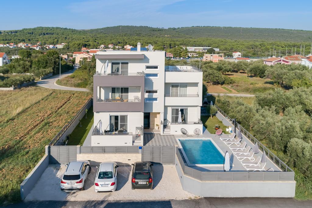 Apartmány Evita se nachází 5 km od města Zadar. Pouze 300 m od pláže, 400 m od prvního velkého obchodu, 1 km od centra města. Nacházejí se v klidné části Bibinje. Nové, moderně zařízené apartmány s vyhřívaným bazénem, wifi, soukromým parkováním zdarma, . . Každý pokoj je klimatizovaný, na každém okně a dveřích jsou sítě proti hmyzu a každý apartmán má svůj vlastní vchod. Apartmán také nabízí bezplatné používání jízdních kol.