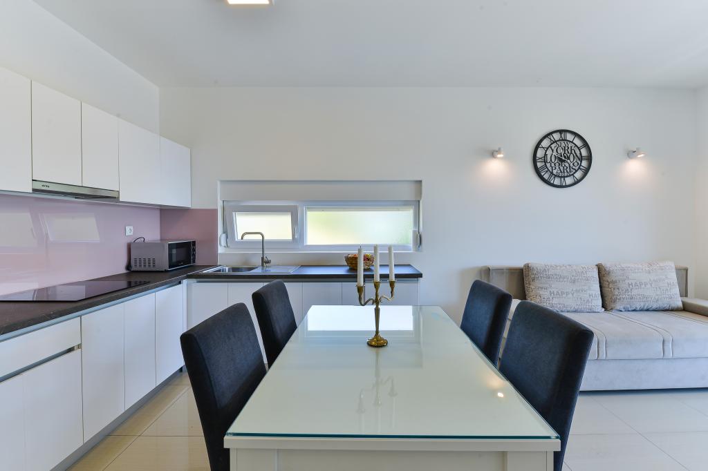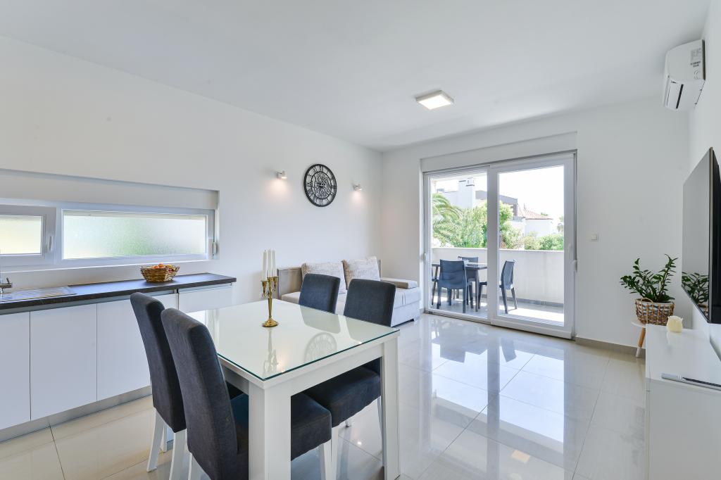 Apartmány Fabian se nacházejí v turistické oblasti Bibinje zvané "Kraj Punta". Objekt se nachází 20 metrů od moře, odkud se rozprostírá krásný výhled na Jaderské moře a dalmatské ostrovy. Vzdálenost od starobylého města Zadaru je 10 minut jízdy autem, kde se nachází několik velkých nákupních center. V okruhu 30 km se nacházejí tři národní parky: NP Paklenica, NP Kornati, NP Krka. Organizují se také výlety do národního parku s odjezdem z Bibinje nebo Zadaru. Všechny ubytovací jednotky jsou klimatizované, vybaveny vlastní koupelnou, terasou, smart TV s úhlopříčkou 140 cm se satelitními programy, pokojovou TV s úhlopříčkou 110 cm a vybavenou kuchyní s myčkou nádobí. Nejbližší restaurace a obchod jsou od objektu vzdáleny 150 m. Café bar a koktejlový bar jsou vzdáleny 50 m. Pláž je od objektu vzdálena 20 m, na pláži si hosté mohou pronajmout vodní skútr, zajezdit si na windsurfingu nebo si zahrát plážový volejbal. K dispozici je bezplatné WIFI připojení k internetu a bezplatné parkování. Pro příjemnou letní dovolenou se slunečními paprsky a vůní moře, Apartmány Fabian