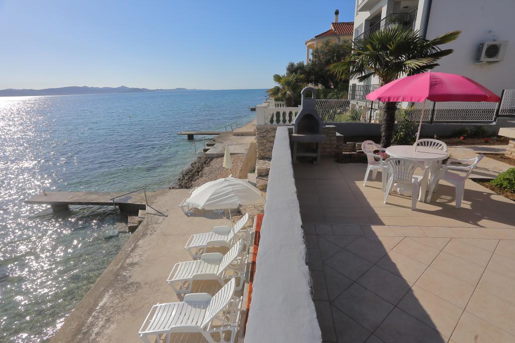 Klimatizované apartmány Milka s výhledem na moře, ostrovy a krásné západy slunce. Vaše pláž je jen pár kroků a je vybavena lehátky, slunečníky a sprchou s teplou a studenou vodou. Ideální pro celodenní koupání a opalování. Zařízení je 15 minut chůze od centra obce, obchodů, pekárny a restaurací. Město Zadar s bohatými turistickými zařízeními je vzdáleno pouhých 15 minut jízdy autem. Ideální pro rodinnou dovolenou. Upozornění: Domácí zvířata nejsou povolena. ,