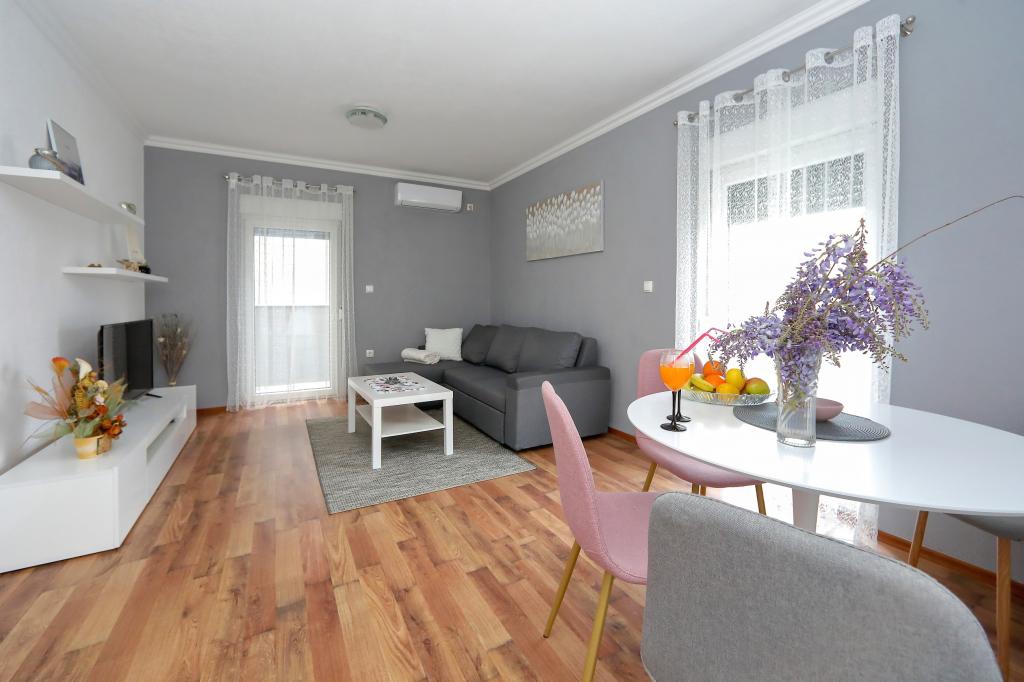 Zcela nové a moderní klimatizované apartmány mají kuchyň s obývacím pokojem a jídelním koutem, koupelnu a pohodlný balkon. Dům je 150 metrů od moře. Parkování a gril jsou k dispozici ve dvoře. Všechno, co potřebujete, je blízko.