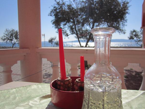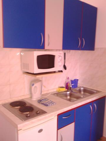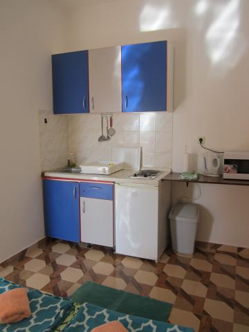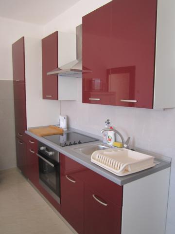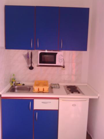 Každý apartmán má plně vybavenou kuchyň (lednice, sporák), koupelna (sprchový kout, umyvadlo, toalat, zrcadlo), pokoje (šatní skříně, manželská postel), terasa s výhledem na moře (stůl, židle).