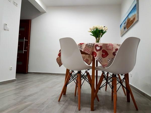 Nově navržené a zařízené apartmány v klidné části termínech umístil na druhém místě k moři. V blízkosti pláže (10m), restaurace, kavárny a 10 minut jízdy autem do Zadaru. V blízkosti Národního parku Paklenica (City), Národní park Krka, a nově otevřeného parku Fun v Rudém přístavu.