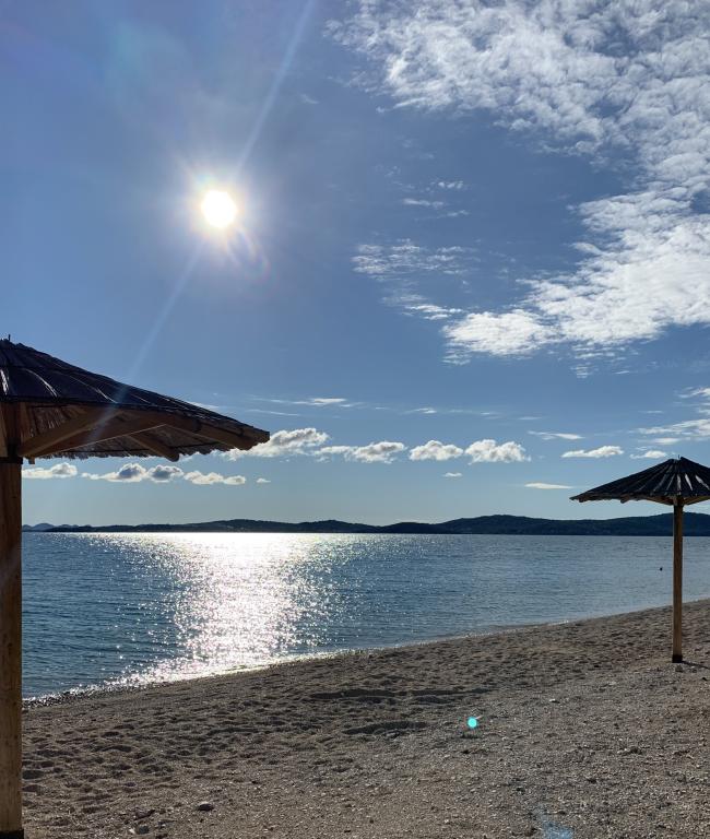 Apartmány se nacházejí přímo u moře a pláže. Velmi čisté a voňavé. Majitelé jsou velmi milí a ochotní a hosté mají k dispozici lehátka a dvě kola. Supermarket je vzdálený 1300 metrů (6 minut jízdy na kole). Pekárna je vzdálená asi 200 metrů a centrum Bibinje s živou atmosférou a četnými hospodami je vzdálené asi 2 km. Zadar je vzdálený 12 km. V blízkosti jsou k dispozici Bolt a Uber, takže se snadno dostanete do různých destinací. Letiště je vzdálené asi 10 km. V apartmánu Suzy jsme strávili 10 nádherných nocí. Vedle apartmánu se nachází krásná pláž s dětským nafukovacím hradem, půjčovnou vybavení pro vodní sporty, stánkem s burgery, cukrárnou a plážovým bistrem s nabídkou nápojů.