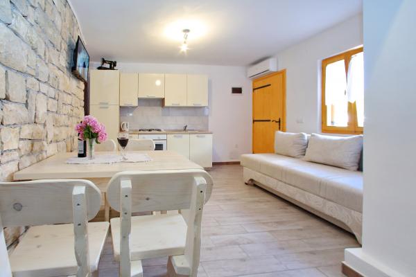 Nově postavený a zařízený rekreační dům Sagunica je ideální pro rodiny s dětmi, pro celkem 4 osoby. Rozdělený do dvou pater samostatným vnějším schodištěm. V přízemí je pokoj s kuchyní a obývacím pokojem s pohovkou pro dvě osoby a vnitřním krbem a toaletou. V prvním patře se nachází ložnice s manželskou postelí a kuchyňkou a koupelnou, balkonem s výhledem do zahrady a na dvoře. Všechny pokoje jsou klimatizované. Ve dvoře zahradní sprcha, stůl a židle a parkování. K dispozici rychlý internet.
