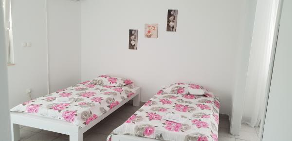 Na břehu jezera Prokljansko (záliv) pronajímáme tři plně zařízené apartmány s bazénem pro celkem 12 osob. Objekt se nachází v blízkosti pláže, hřiště pro kavárny, restaurace a mini market. Můžete se také těšit na Národní park Krka a Kornati. APARTMÁNY 1 a 2 jsou pro 8 osob a jsou umístěny v patře rodinného domu, plně vybaveného, každý se skládá z jedné ložnice s manželskou postelí a prostorného obývacího pokoje se dvěma přistýlkami pro dvě osoby, kuchyně, koupelny a terasy. APARTMÁN 3 je pro 4 osoby a nachází se ve 2. patře rodinného domu, plně vybavený a skládá se z jedné místnosti s manželskou postelí a dalších dvou přistýlek pro dvě osoby, kuchyně, koupelny a prostorné terasy. Apartmány mají vlastní oplocené parkoviště. Všechny pokoje jsou klimatizované a vybavené pračkou a myčkou a mají Wi-Fi.