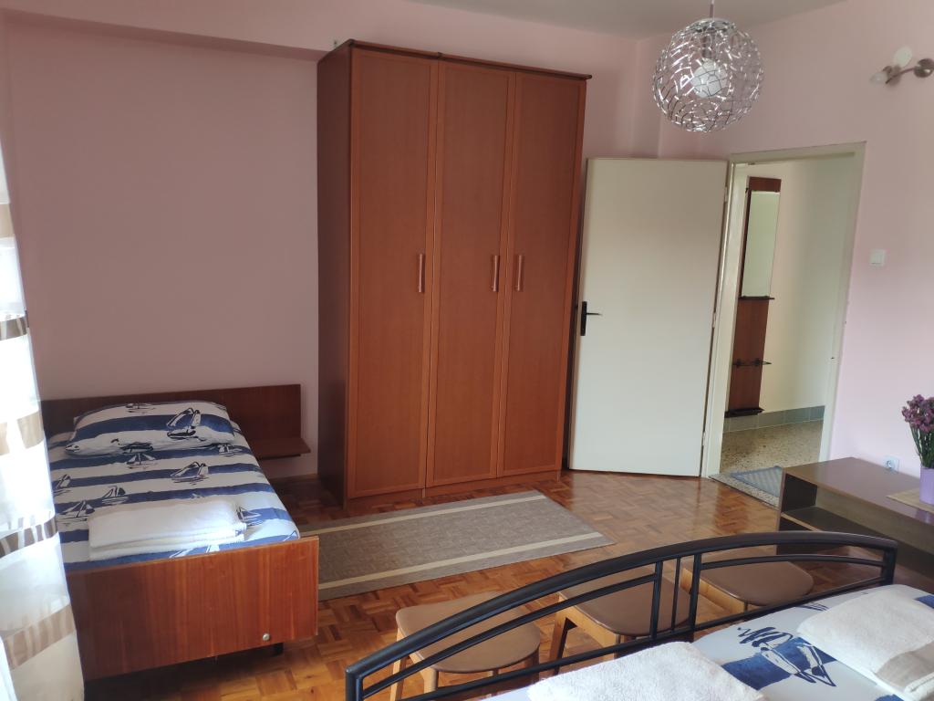 Apartmán Centar se nachází v samém centru, má bezplatné soukromé parkoviště před domem, 50 m od moře.Skládá se z jedné ložnice s manželskou postelí a přistýlkou, kuchyně s obývacím pokojem a koupelnou. Klimatizovaný a má terasu.