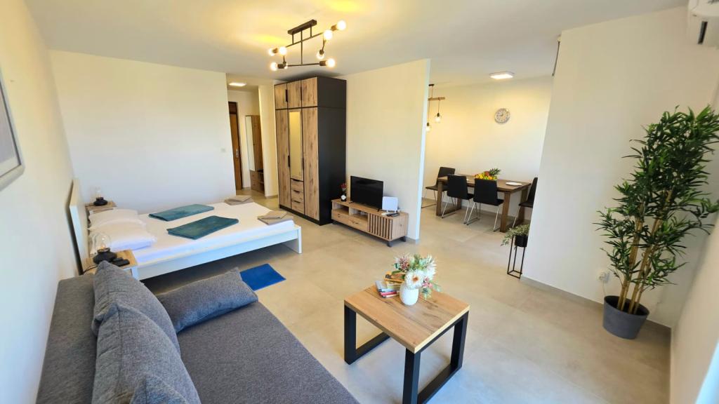 Nově zrekonstruovaný apartmán v centru Biogradu. V blízkosti se nachází veškerá základní občanská vybavenost, jako jsou restaurace, kavárny, cukrárny, obchody atd. Pláž je vzdálena 5 minut chůze. Z balkonu je výhled na moře a centrum Biogradu. Apartmán má myčku nádobí a pračku. Autobusové nádraží je nedaleko. Apartmán se nachází ve čtvrtém patře v budově bez výtahu.