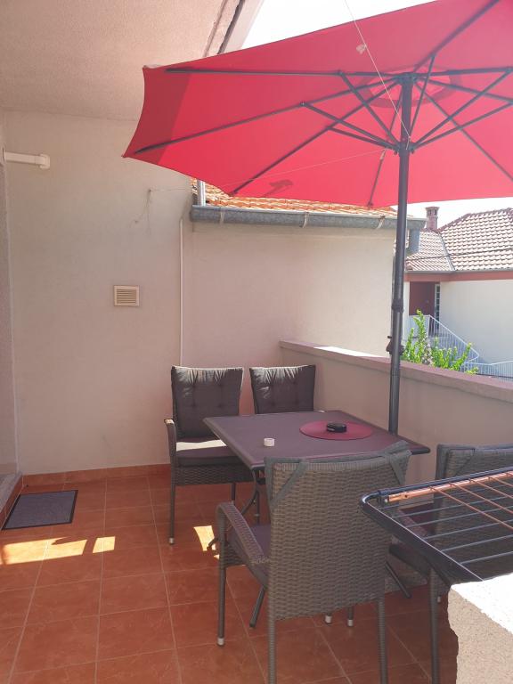 Chtěli byste strávit dovolenou se vším na dosah ruky? Nově zrekonstruovaný byt v SILNÉM centru města se zajištěným parkovacím stáním před domem je tou správnou volbou. Skládá se ze dvou prostorných dvoulůžkových pokojů, kuchyně s obývacím pokojem a přistýlkou, dvou krytých balkonů a koupelny. 50 m od moře a restaurací a 350 m od pláže.