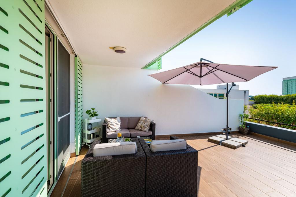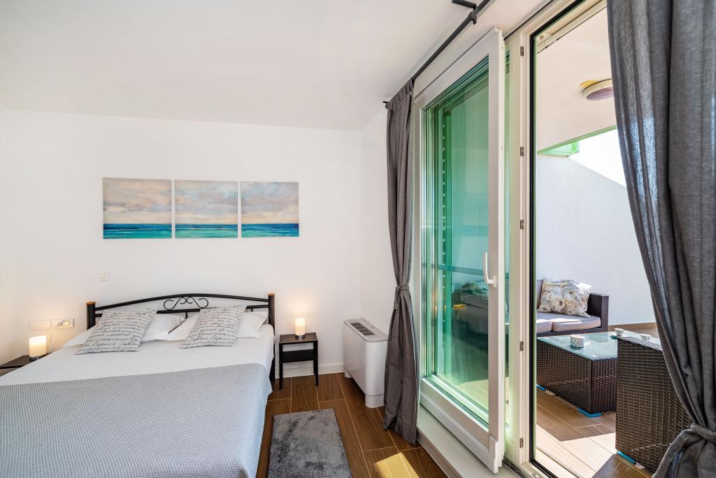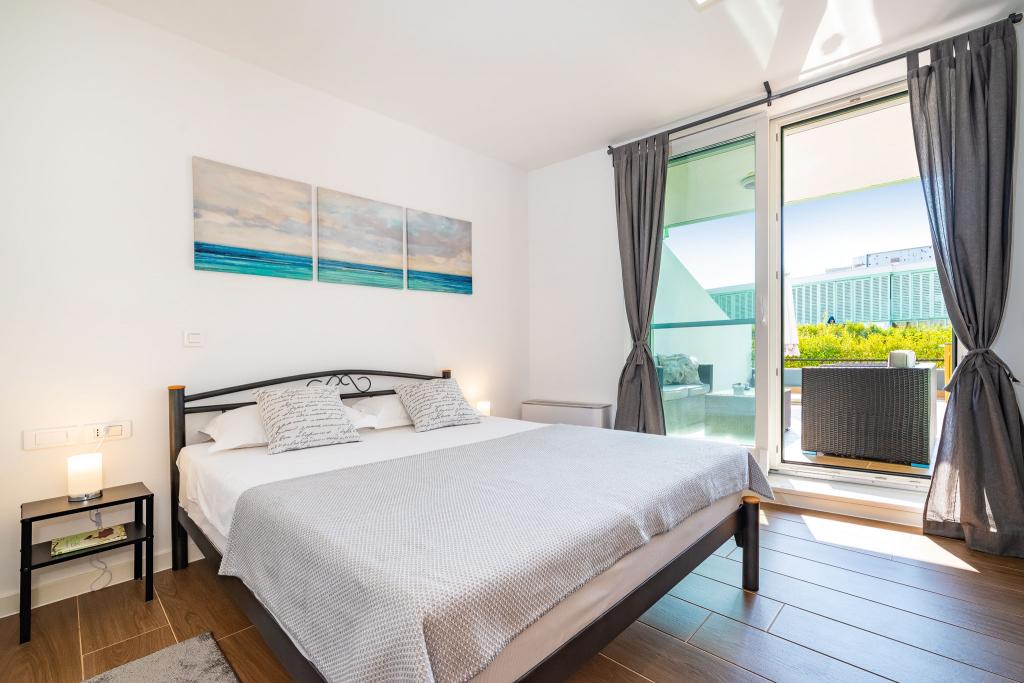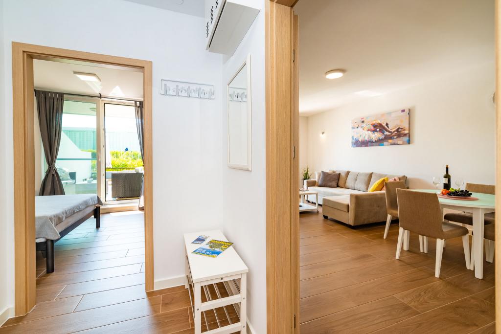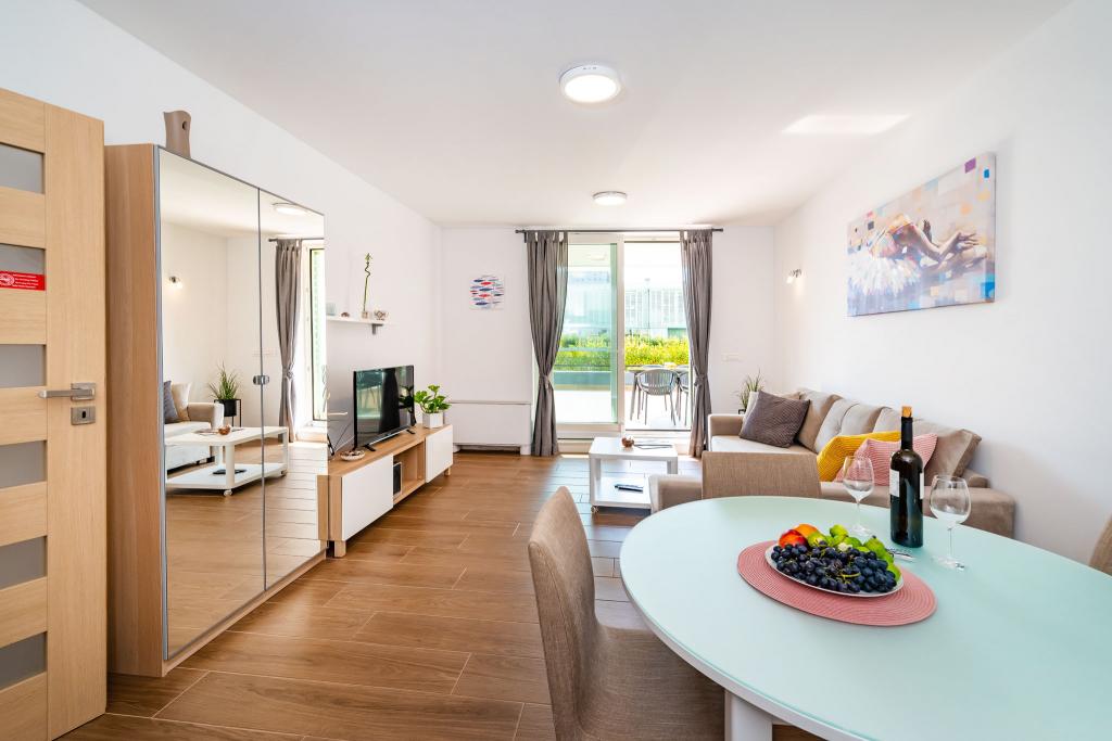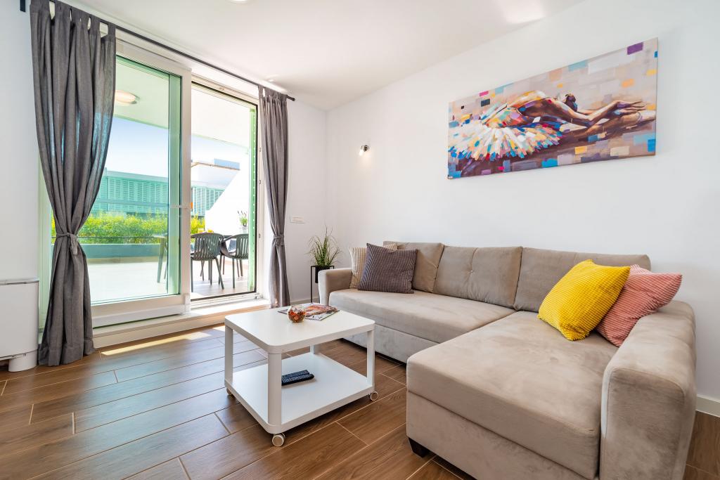 Apartmán Luni se nachází ve druhém patře obchodního centra Bure Centar v Biogradu na Moru. V centru Bure je supermarket, obchod, restaurace a kavárny. Byt je oddělen od hlučného hluku, má 50 m2 obytné plochy a 47 m2 terasu, kde si můžete vychutnat. Má obývací pokoj s kuchyní, koupelnu, ložnici, venkovní parkoviště pod kamerovým systémem. Zahrnuje bezplatné Wi-Fi, TV, klimatizaci, venkovní gril.