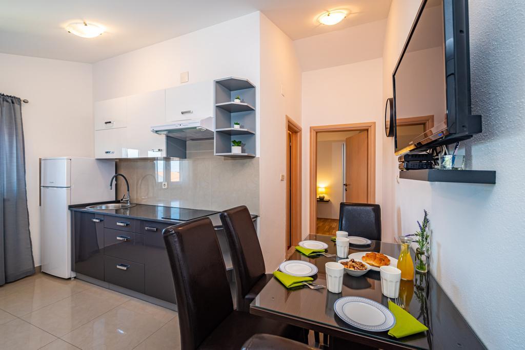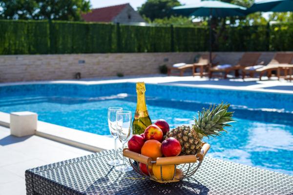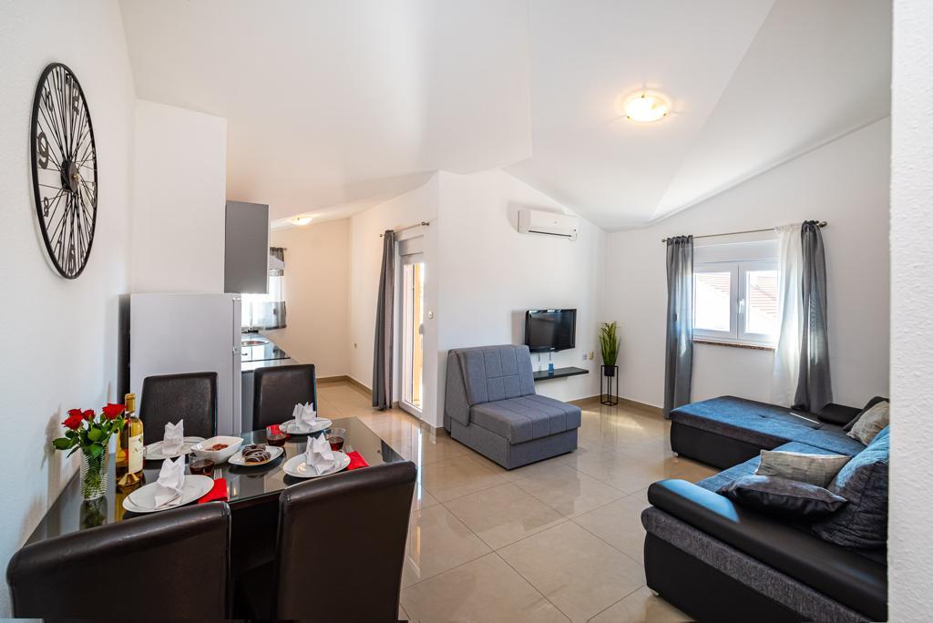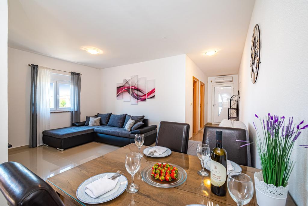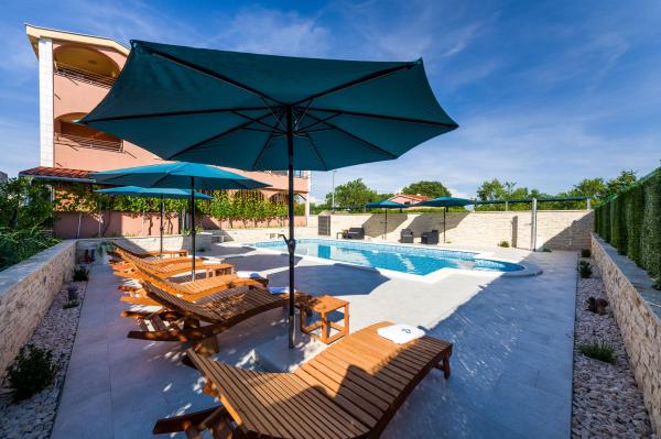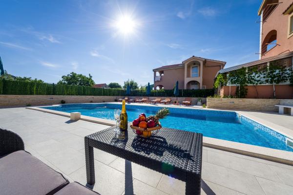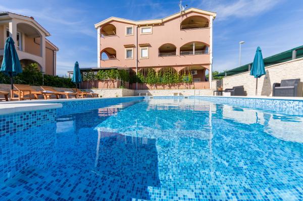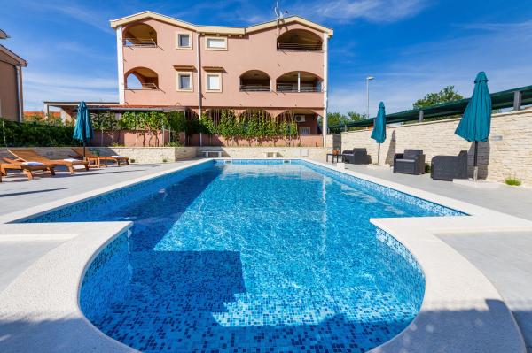 Pronajímám 5 apartmánů s jednou ložnicí s bazénem, apartmány se nacházejí v klidné části Biogradu. Každý apartmán má plně vybavenou kuchyň (s nádobím), pokoj s manželskou postelí (ložní prádlo), obývací pokoj s velkou rozkládací pohovkou (pro dvě osoby), dětskou postýlku, samostatnou postel. (TV, satelit), WC, balkon, grilování, parkování, klimatizace. Bazén (10 × 5 m) je vybaven protiproudem, hydromasáží a ledovým osvětlením. Zařízení je pod kamerovým dohledem. Apartmány jsou určeny výhradně pro dovolenou, protože se nacházejí v rodinném domě, takže to není zábava a párty. Každý apartmán může ubytovat 4-5 osob. Vzhledem k rozmanité nabídce zábavy je město ideální pro děti, malé i velké.
