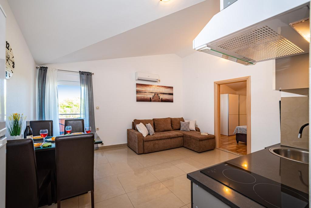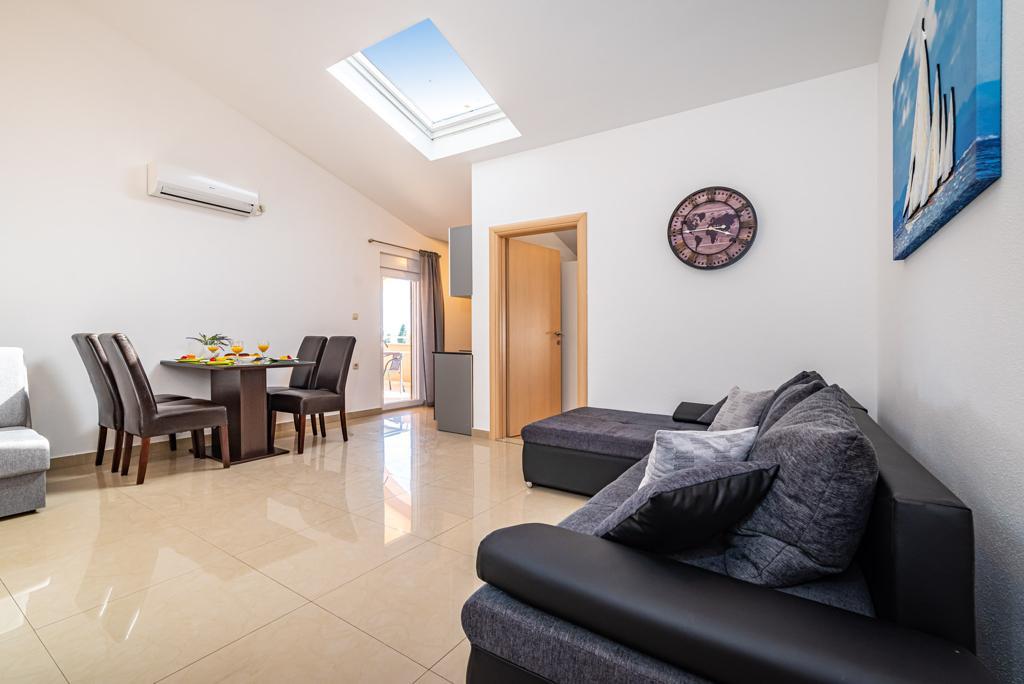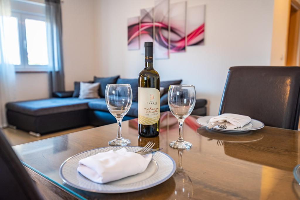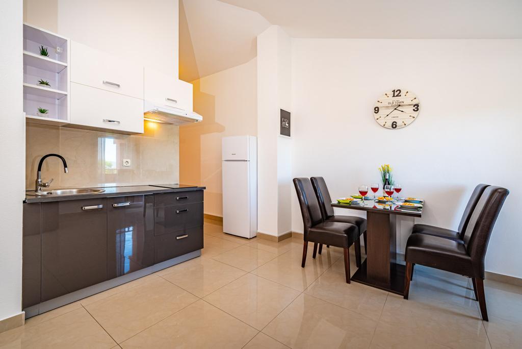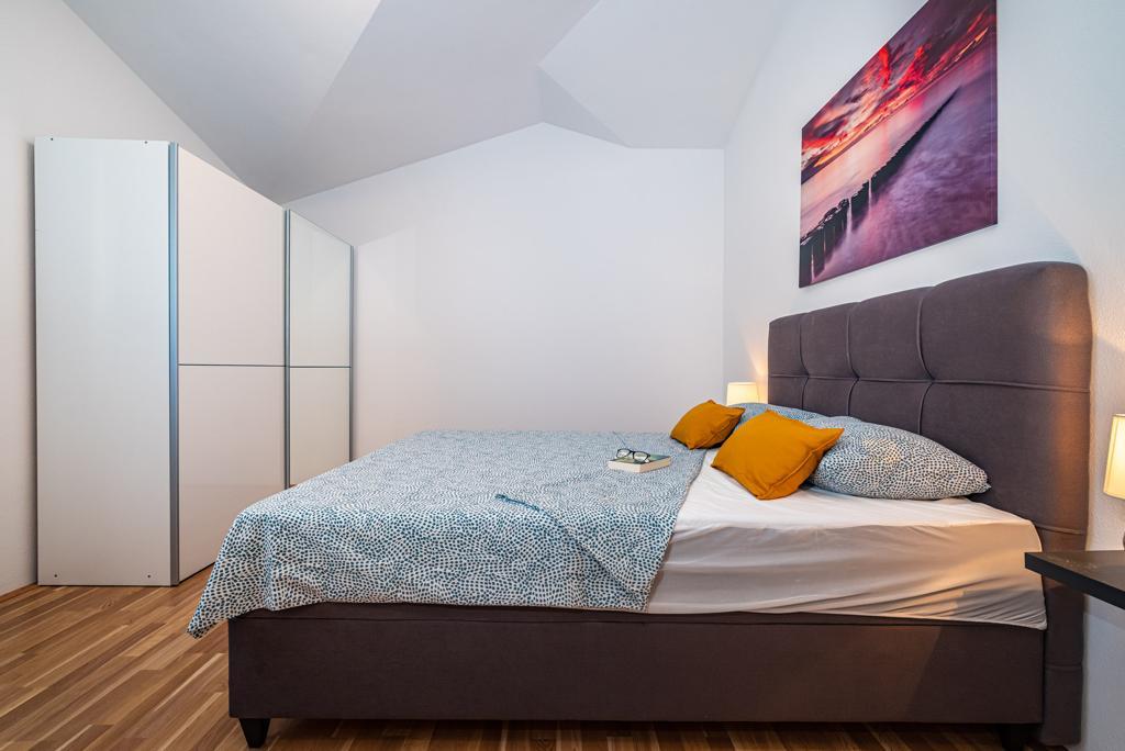 Pronajímám 5 apartmánů s jednou ložnicí s bazénem, apartmány se nacházejí v klidné části Biogradu. Každý apartmán má plně vybavenou kuchyň (s nádobím), pokoj s manželskou postelí (ložní prádlo), obývací pokoj s velkou rozkládací pohovkou (pro dvě osoby), dětskou postýlku, samostatnou postel. (TV, satelit), WC, balkon, grilování, parkování, klimatizace. Bazén (10 × 5 m) je vybaven protiproudem, hydromasáží a ledovým osvětlením. Zařízení je pod kamerovým dohledem. Apartmány jsou určeny výhradně pro dovolenou, protože se nacházejí v rodinném domě, takže to není zábava a párty. Každý apartmán může ubytovat 4-5 osob. Vzhledem k rozmanité nabídce zábavy je město ideální pro děti, malé i velké.