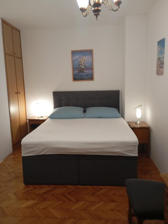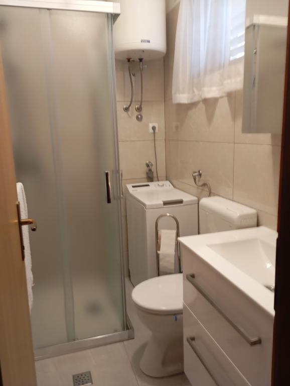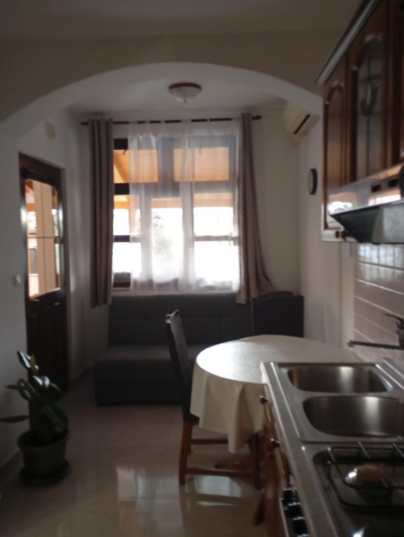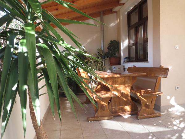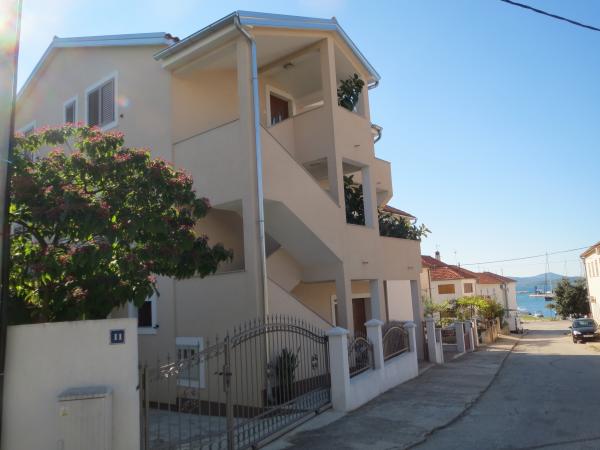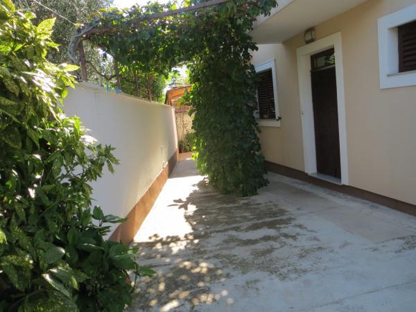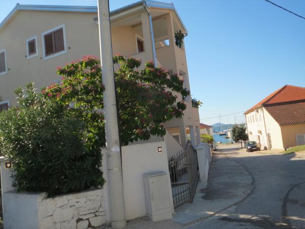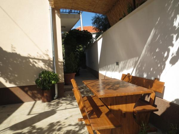Apartmány se nacházejí v přízemí budovy. Větší apartmán má parkování ve dvoře, menší byt má velkou terasu, parkování zdarma ve dvoře. Dům je 50 m od moře, blízko centra v klidné části města, blízko přístavu, 150 m od pláže, vše je v blízkosti restaurací, obchodů, lékáren, jedním slovem, když přijedete, zaparkujete a ne používat auto až do konce dovolené.