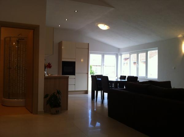 Nové funkce moderní byt s výhledem na moře se nachází jen 57 m od písečné pláže a pěší dlouhá 2 km. Kuhinja.Klimatiziran plně vybavené Wi-Fi. Je ideální pro pobyt s dětmi a seniory persons.we uzavřít obchod, pekárna, kavárna, mjenjačnica.U Byt má zahradu, kde si hosté mohou zůstat. Jeho zařízení nabízí konfor.Dobrodošli.