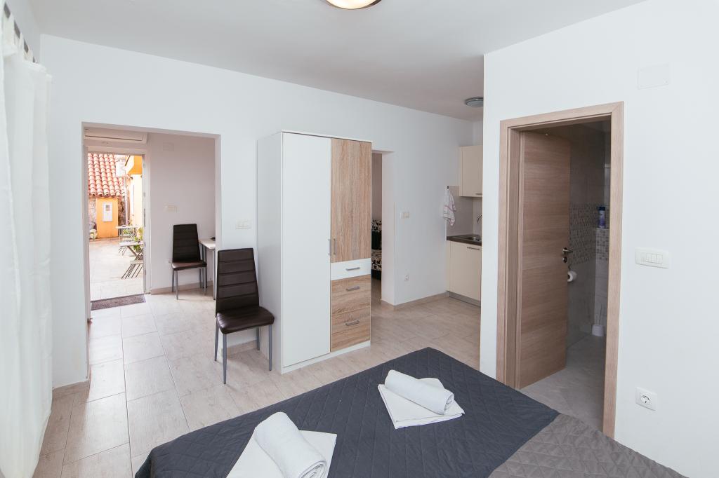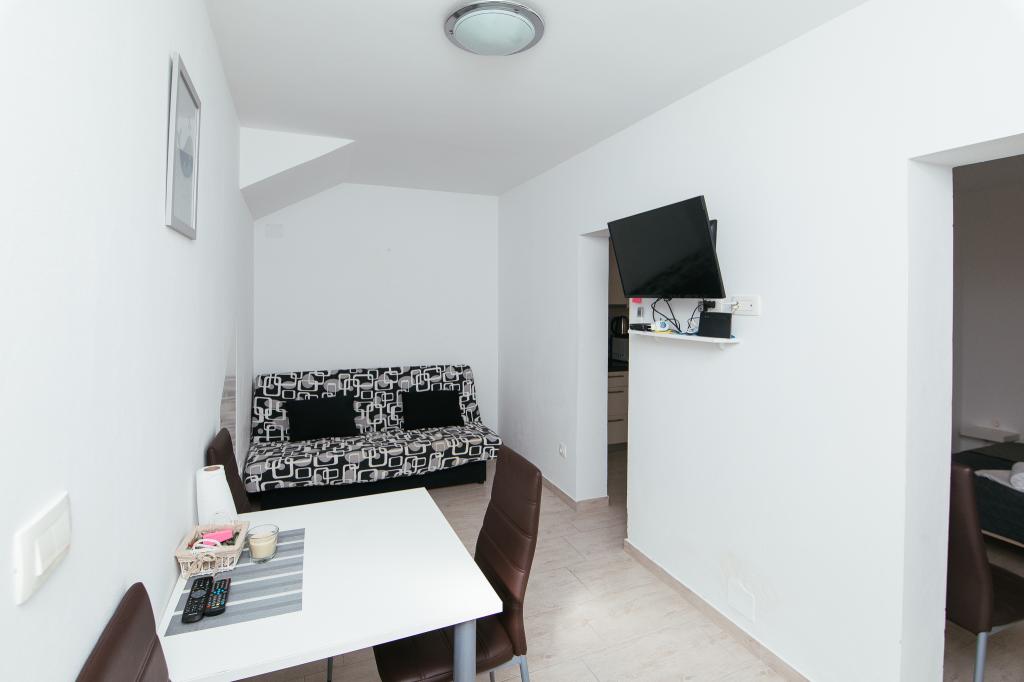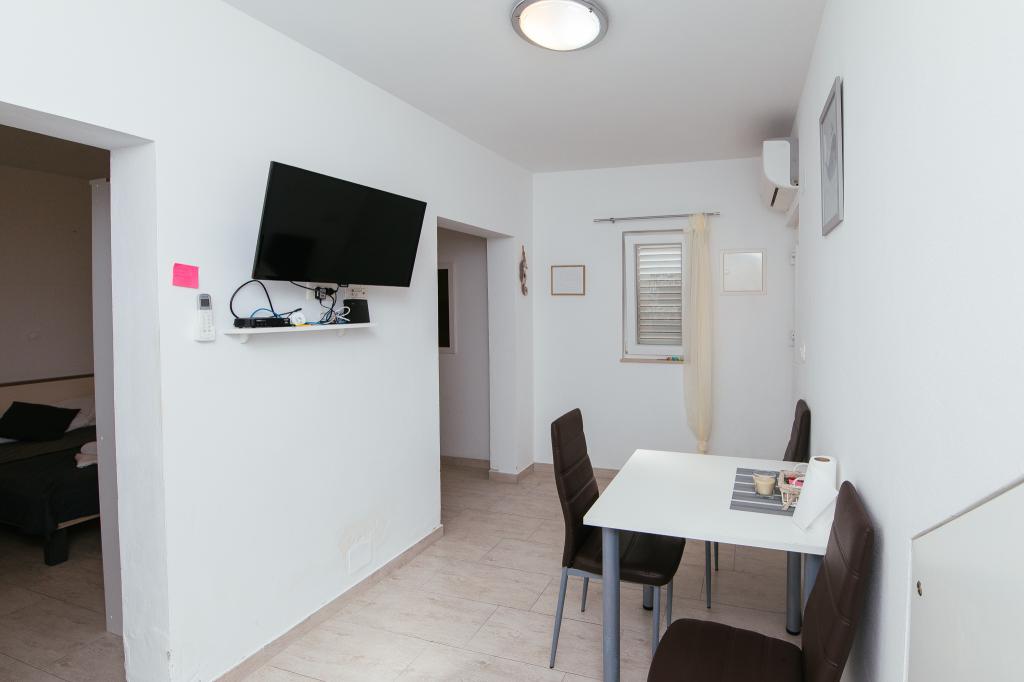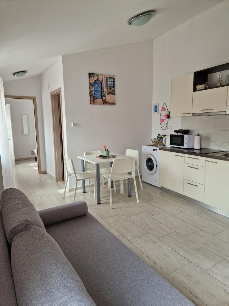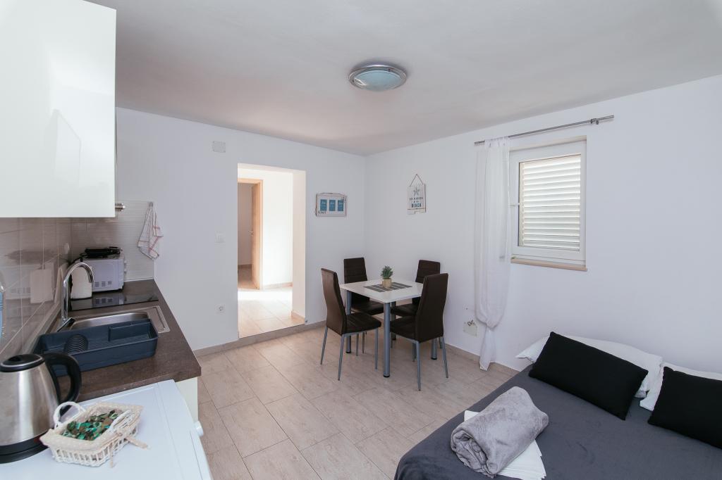 Apartmány AE se nacházejí v Biogradu na Moru na adrese Splitska ulica 37a. Apartmány se nacházejí 700 m od pláže Dražice (max. 7 minut chůze), centrum města je vzdálené 500 m. Obchod je od apartmánu vzdálený 20 m. Apartmán má jednu ložnici, rozkládací pohovku, kuchyň, koupelnu, jídelnu a velkou společnou terasu. Parkování zdarma, klimatizace, wifi, pračka, gril k dispozici.