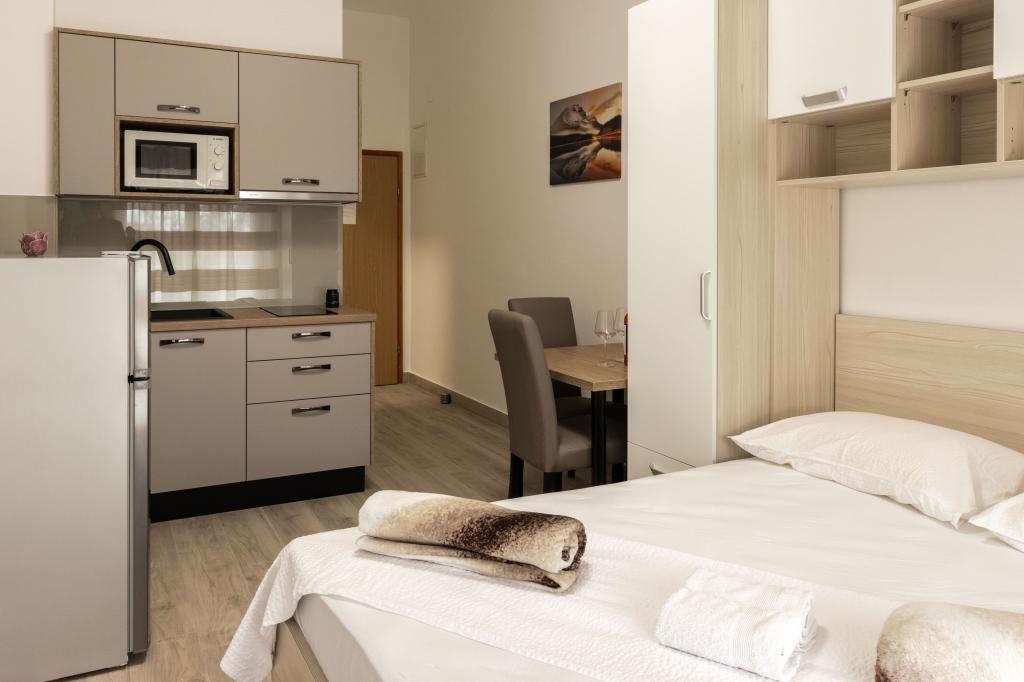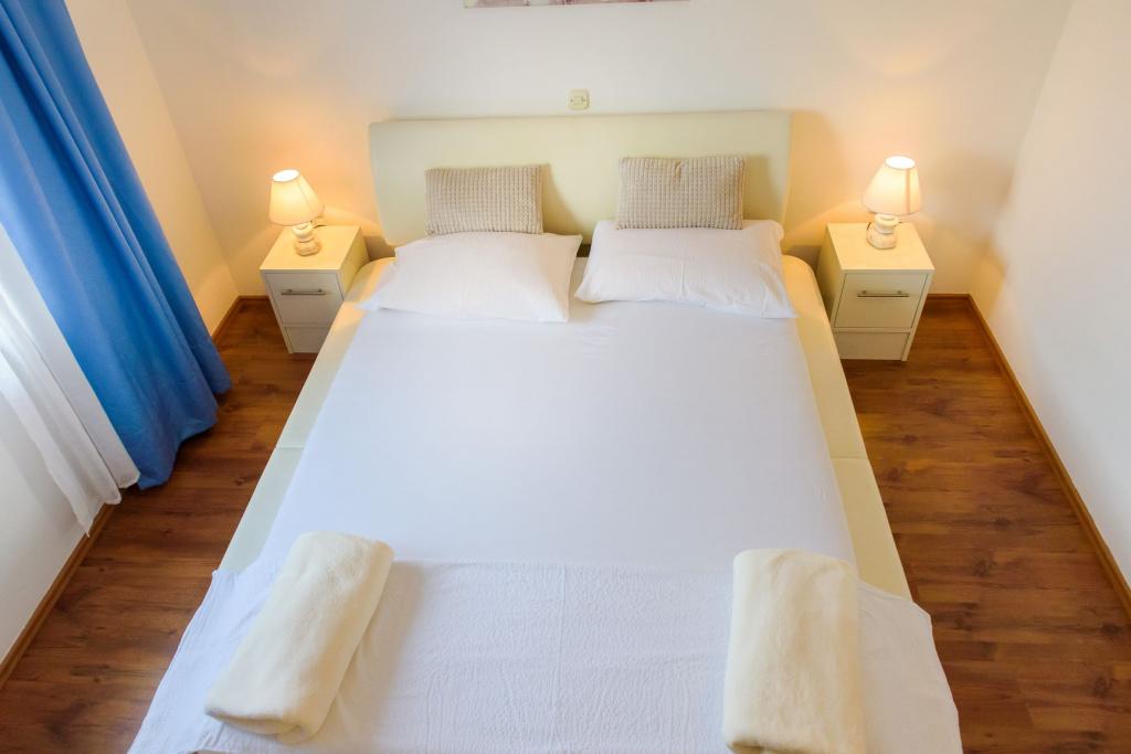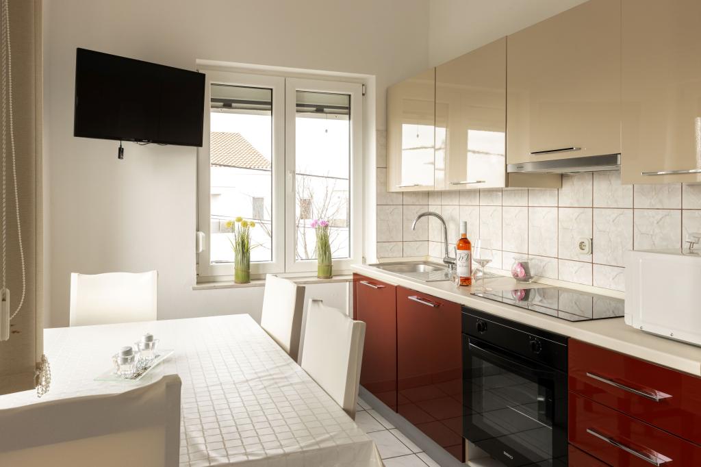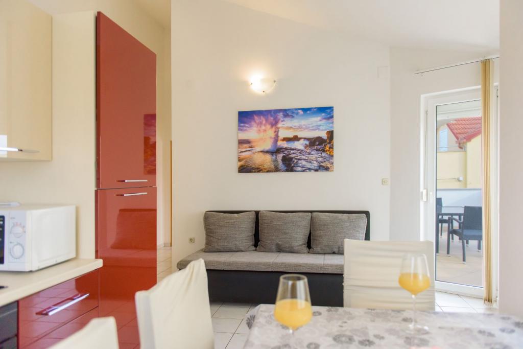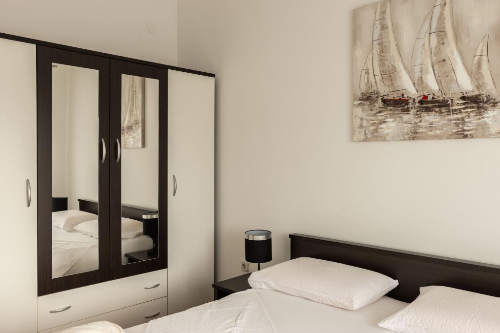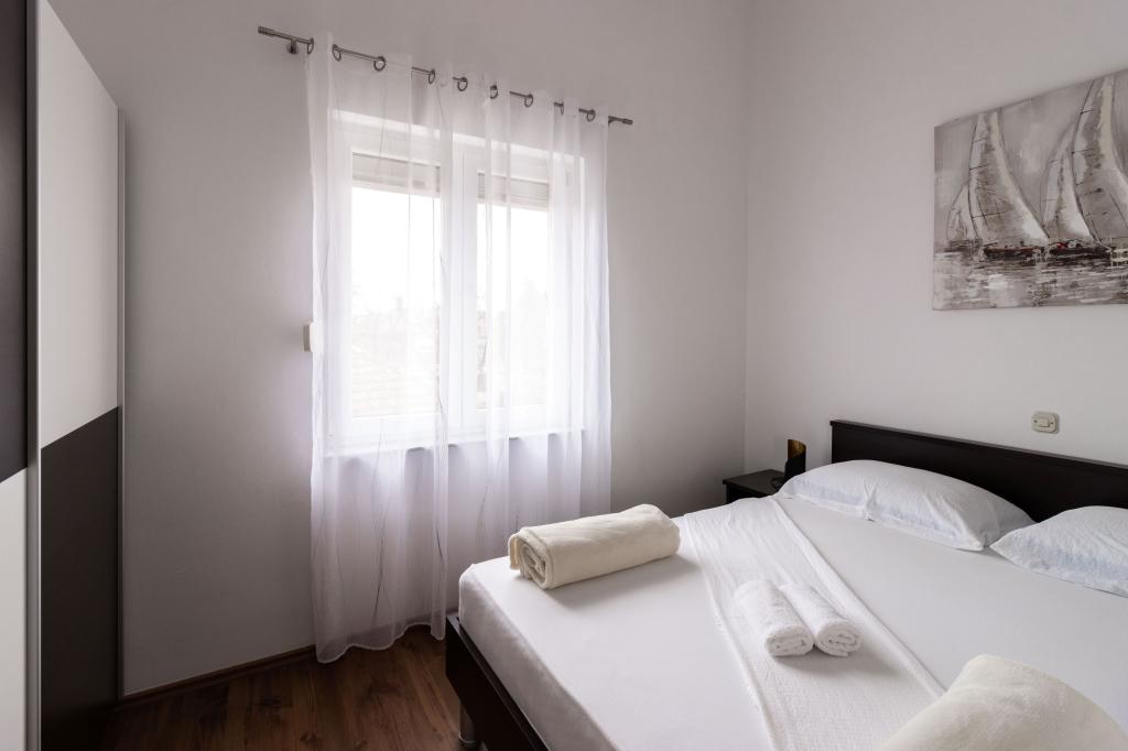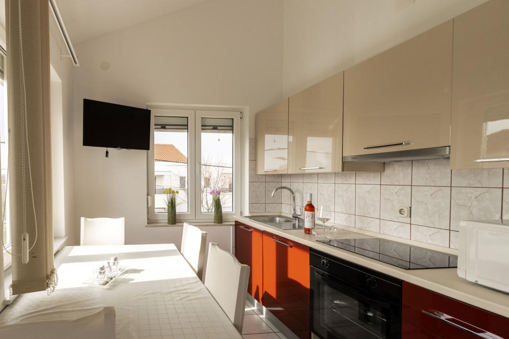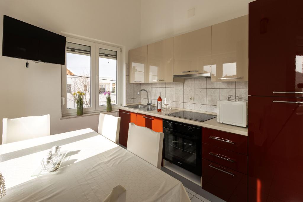 Naše apartmány se nacházejí v klidné části města Biograd na Moru, pouhých 750 m od hlavní městské pláže "Dražica". Dům je z nedávné výstavby. Apartmány jsou založeny na rodinné turistice a jsou tak přizpůsobeny hostům. Jsou kategorizovány třemi hvězdičkami a poskytnou vám pohodlnou a příjemnou dovolenou. Naše apartmány jsou oblíbenou destinací pro rodiny s dětmi, a to jak pro klidné rodinné prostředí, tak pro doplňkové vybavení pro děti.Všechny jednotky jsou klimatizované, mají vlastní koupelnu, TV, bezplatné Wi-Fi a plně vybavenou kuchyň. má vlastní balkon. Hosté mohou zdarma využívat soukromé parkoviště v budově.Biograd na Moru se nachází v samém centru Jadranu a hrdě nese označení srdce Jadranu. Biograd je jedním z nejznámějších turistických center v Dalmácii a jedním z nejmalebnějších městeček na Jadranu. V bezprostřední blízkosti Biogradu jsou národní parky: Kornati, Krka, Paklenica a také přírodní park Vranské jezero.