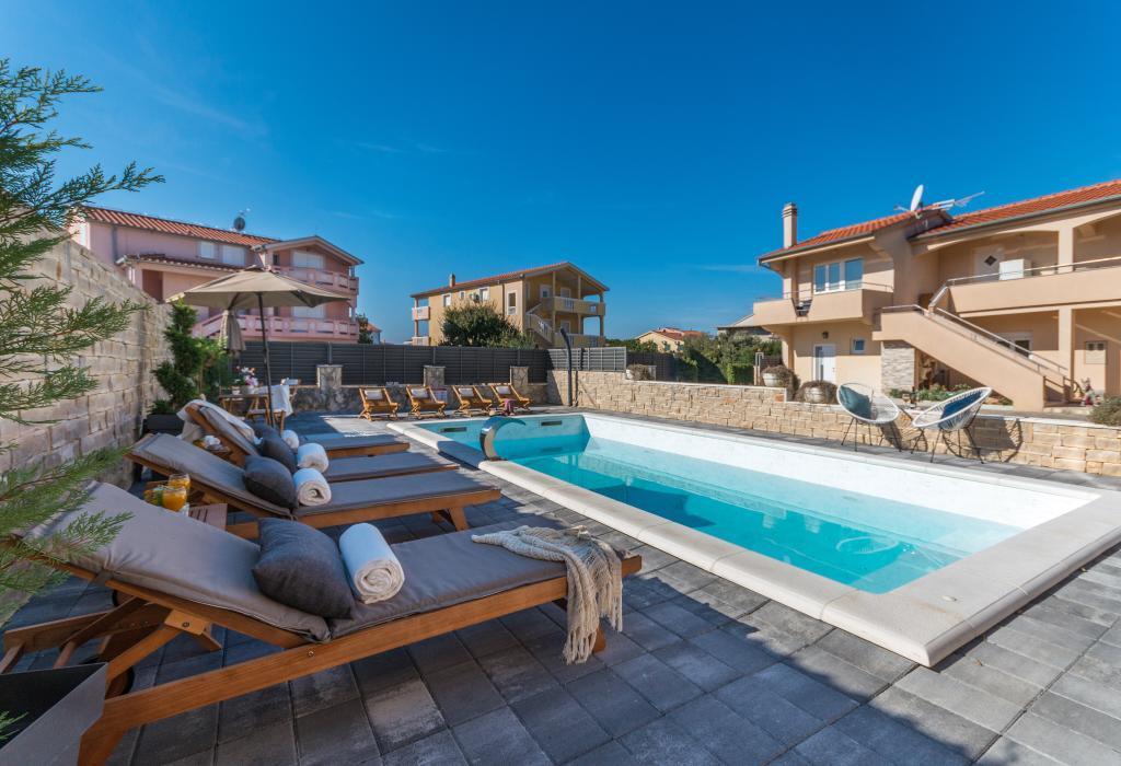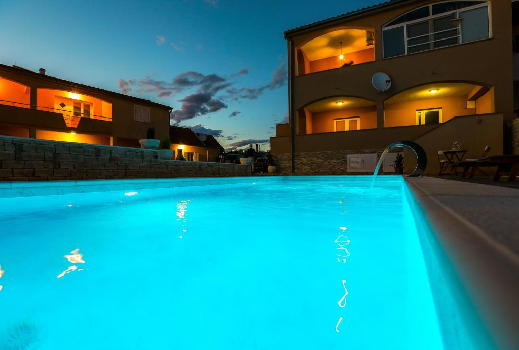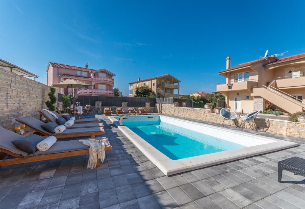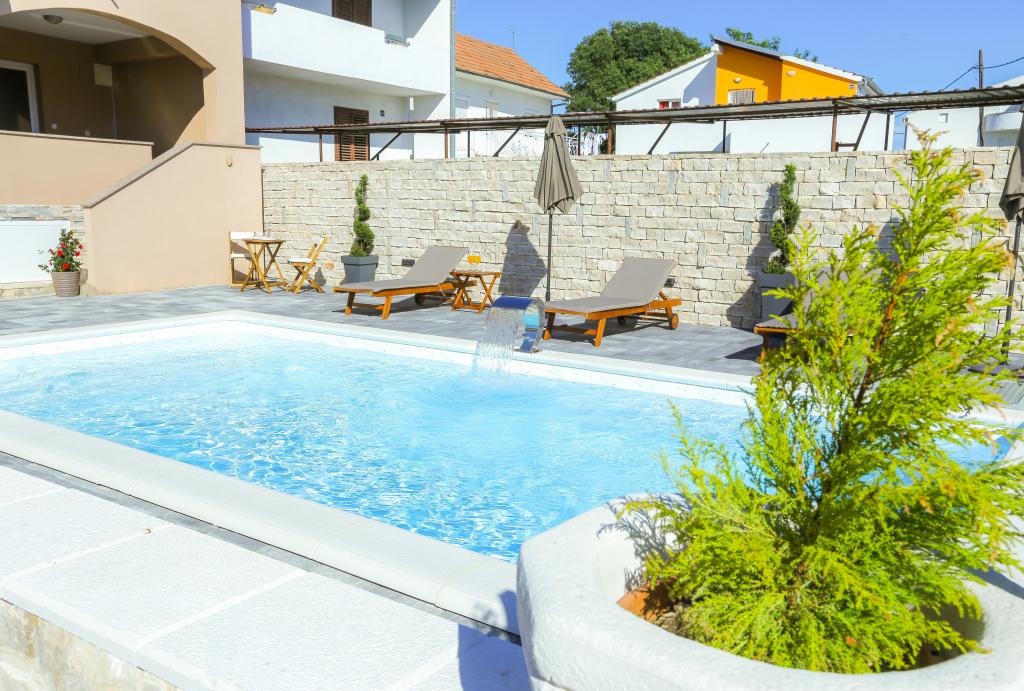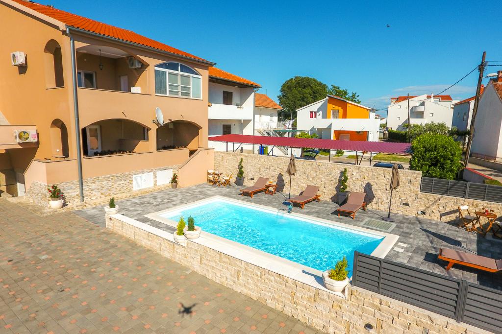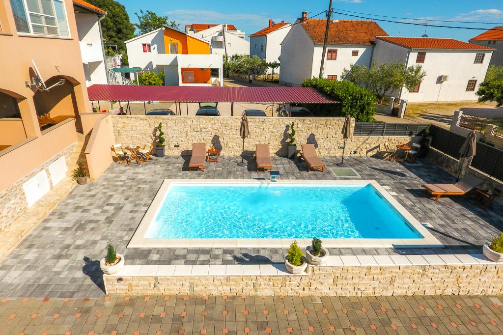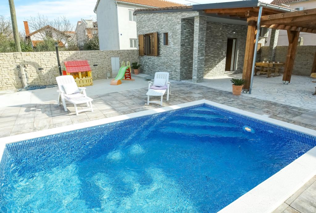 moderně vybavené apartmány v klidné části Biogradu. velmi vhodný pro rodiny s dětmi. Velký dvůr s posuvnými elektrickými dveřmi, dětské hřiště. možnost využití krčmy pro grilování a socializaci. v blízkosti písečné pláže se spoustou zařízení a restaurací, aquapark, dětské hřiště ... Možnost pronájmu celého domu se 2 apartmány pro dvě rodiny s vlastním dvorem a grilem. speciální nabídka - pronájem rekreačního domu o rozloze přibližně 36 metrů čtverečních, který nabízí kompletní klid a soukromí. vlastní venkovní sprcha a venkovní gril. velká kamenná zeď kolem domu s elektrickými dveřmi. Kompletní soukromí a přesto blízkost pláže a dalších zařízení. Ideální pro rodinnou dovolenou.