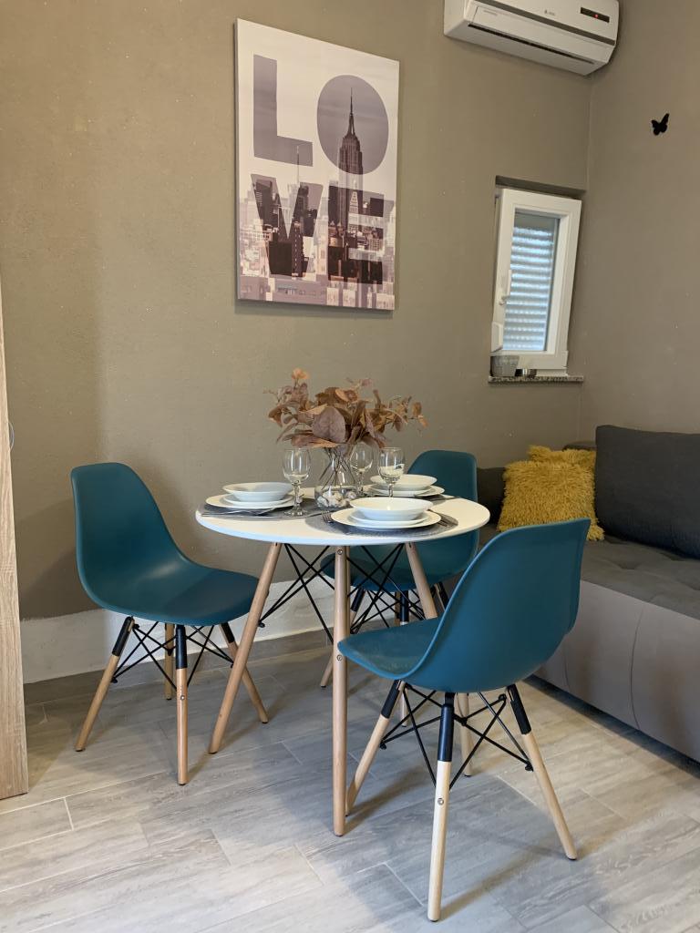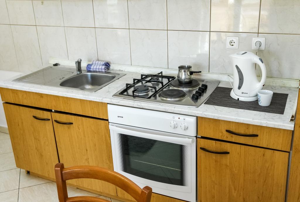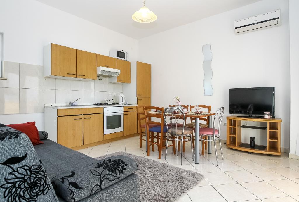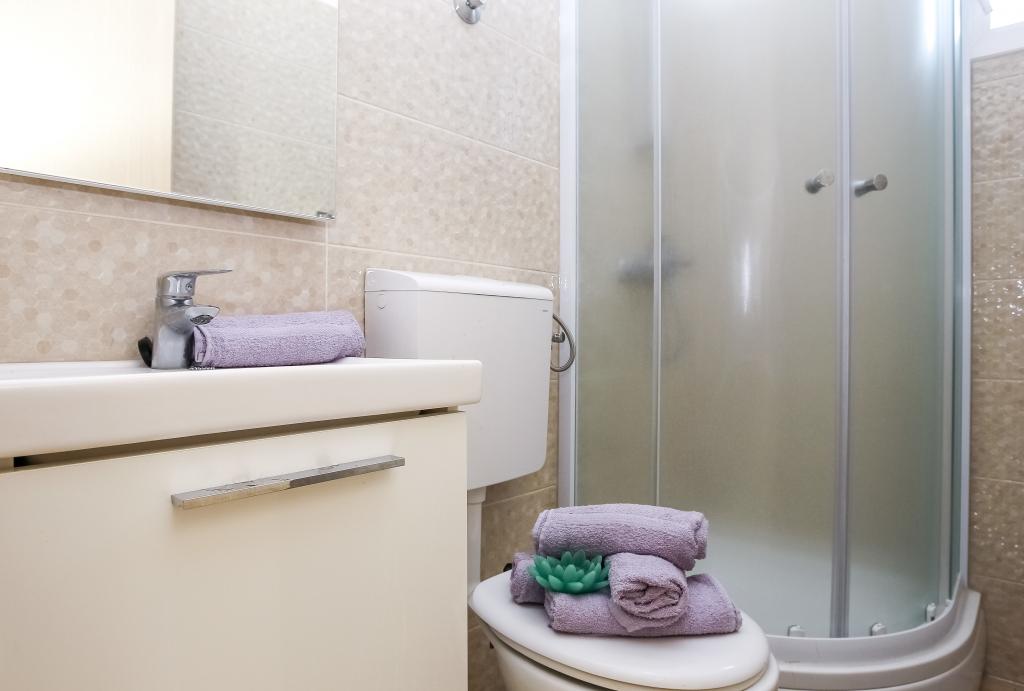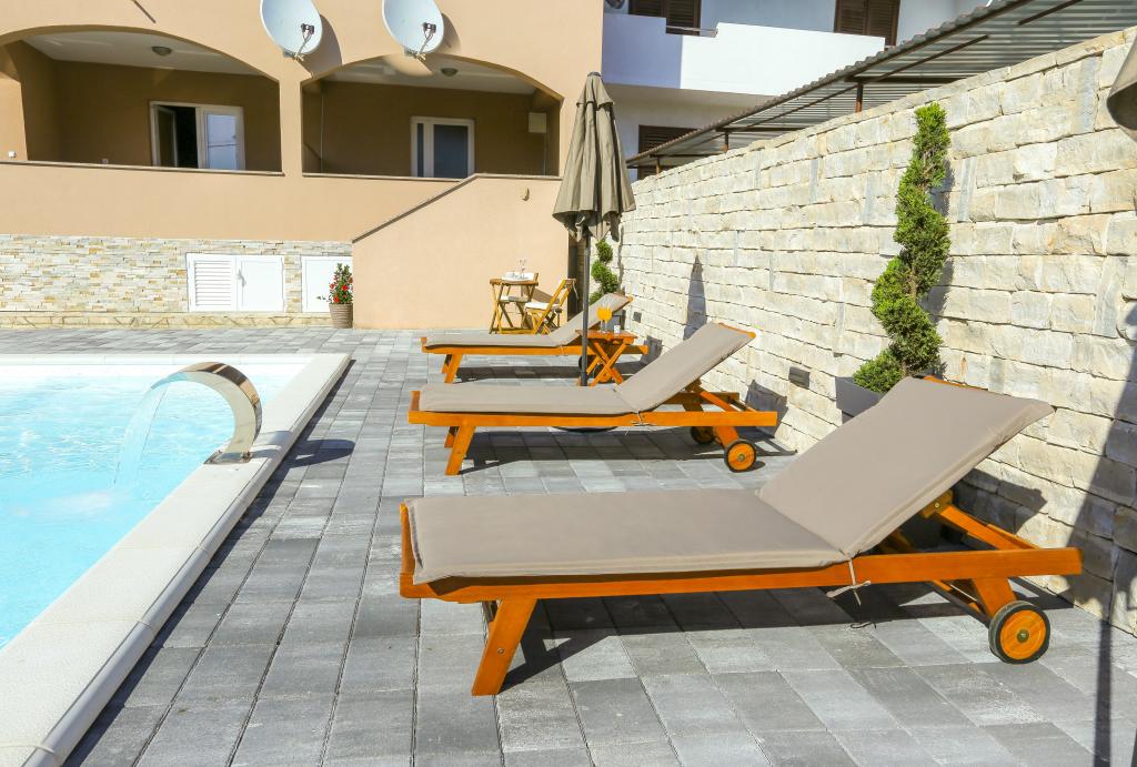Úhledné a čisté byty, konečně našel byt s dostatkem ručníků, nádobí, sklenic, bešteka. myčka, pračka, rolička, mikrovlnná trouba, sporák, klimatizace. velká terasa, velké parkoviště. na pláž 2 minuty autem. klidné okolí, milí hostitelé. Čistý bazén, dostatek lehátek a slunečníků. Postele jsou pohodlné.