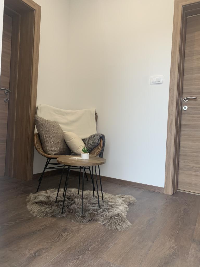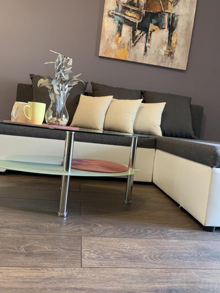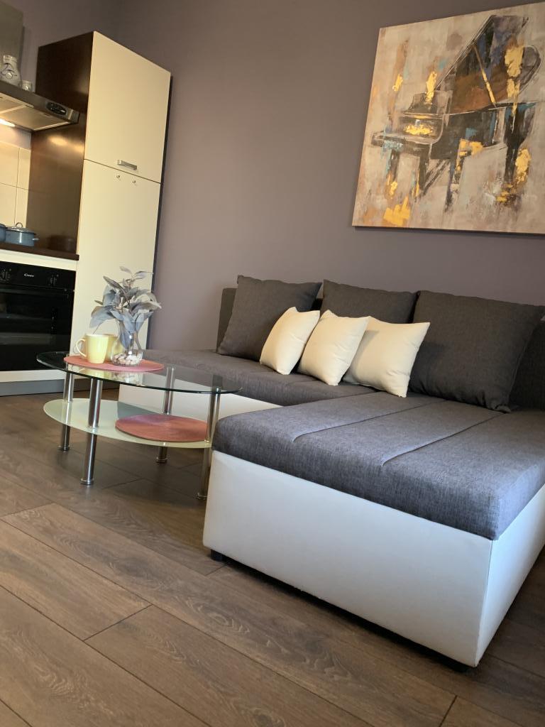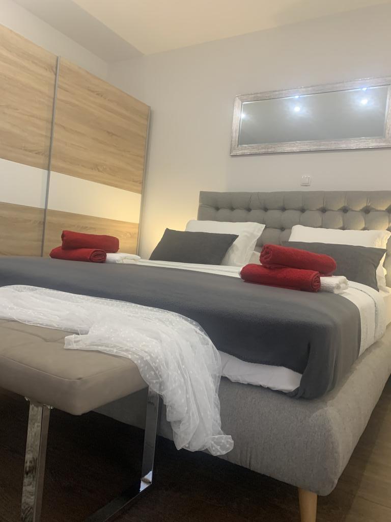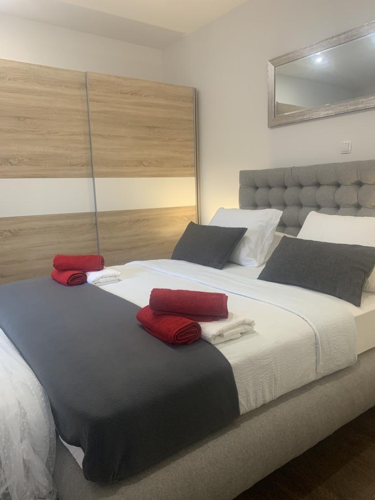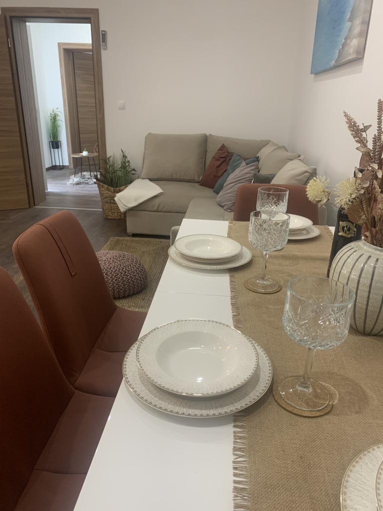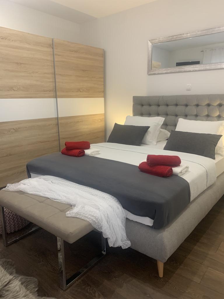 Velmi pěkný, velký, moderní byt s terasou! Postele jsou velmi pohodlné. Klidná lokalita, ale velmi centrálně umístěná. 10 minut chůze na pláž, 2 minuty autem. Minimarket hned vedle. Nákupní centrum 4 minuty autem. Bazén byl pro děti vrcholem! Velmi přátelští hostitelé. Určitě se vrátí.