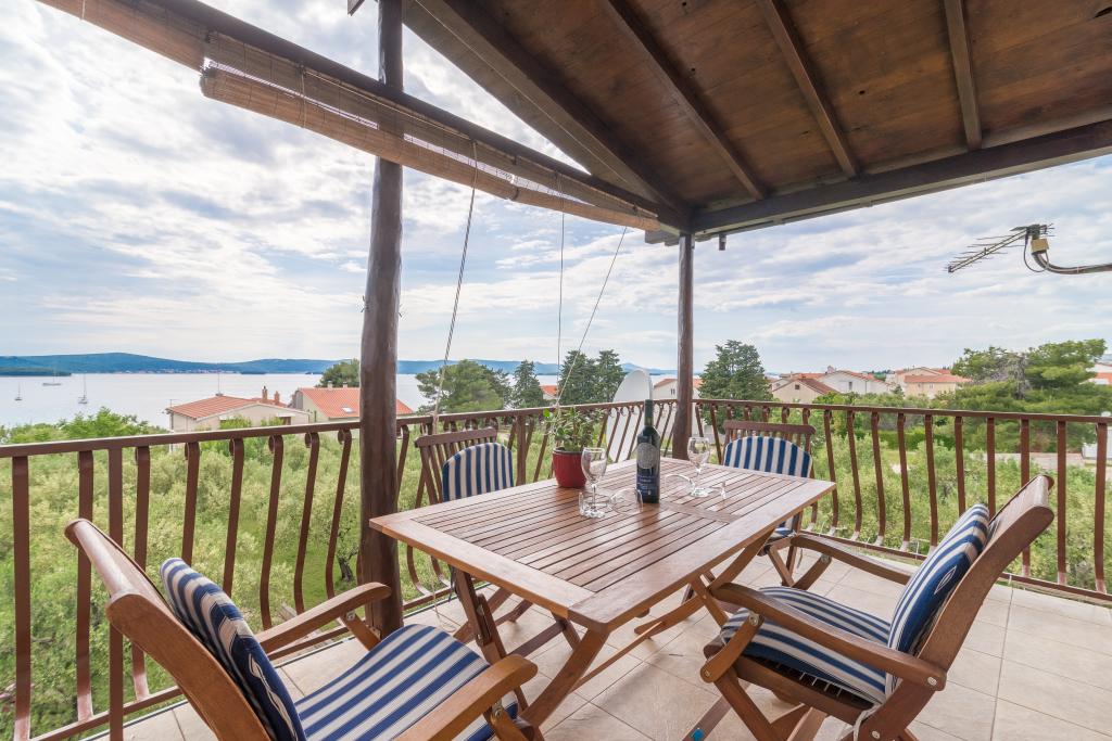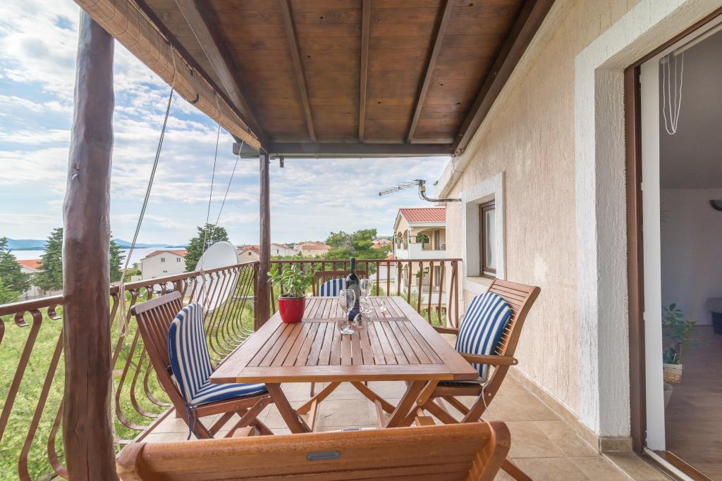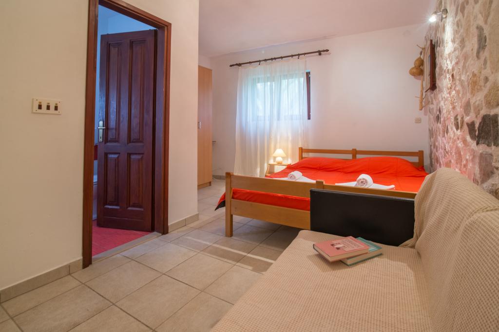 Rodinný dům se dvěma byty a pomocné budovy s jedním bytem. Apartmán A2 smješšten je v prvním patře a skládá se z kuchyně, ložnice, koupelna a terasa s výhledem na moře. Apartmán A4 +1 se nachází v nejvyšším patře, klimatizací, dvě ložnice s manželskou postelí, koupelna, kuchyň a obývací pokoj, terasa s výhledem na moře. A2 +1 se nachází v pomocné budově v přízemí, klimatizace, kuchyň, ložnice (manželská postel s přistýlkou), koupelna, 50 m od moře.