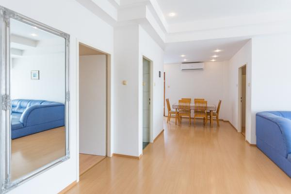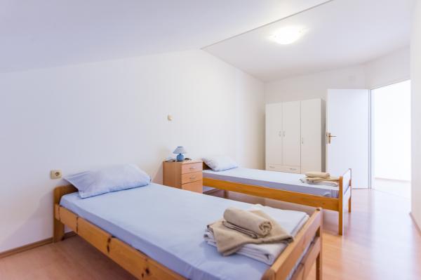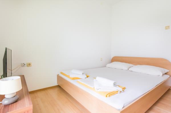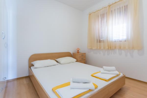 Krásný rodinný dům v Biogradu na Moru, v blízkosti pláže Bošana, vhodné pro děti a neplavce, nabízí své tři apartmány: Apartmán 1, v prvním patře, s jednou ložnicí a rozkládací pohovkou až pro 3 osoby, Apartmán 2, a to i v prvním patře, se dvěma ložnicemi a jedním samostatným lůžkem, až pro 5 osob a apartmán 3 ve druhém patře, s třemi ložnicemi a jedním samostatným lůžkem, až pro 7 osob. V každém apartmánu je klimatizace (použití na přání za poplatek 5 EUR za den) a TV se satelitním příjmem a kuchyň s nádobím a příbory, lednička s mrazákem a kávovarem. Apartmány 1 a 2 mají vlastní balkon - 2 apartmány s výhledem na moře a vlastním sociálním zařízením a v kuchyních apartmánů je zde stále ještě vaření. Byt 3 má dva balkony, z nichž jeden je větší, z obývacího pokoje s výhledem na moře, stejně jako koupelna a samostatné WC, a kuchyň sporákem a troubou.