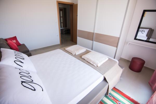 Byli jsme ubytování v apartmanu 2+1, apartmán byl velký a dokonale čistý. Velký plus má velká lednička. Jedno malé mínus, na balkoně chybí deštník nebo markýza, přes den se tam nedalo sedět. Od apartmánu je vše blízko jak náměstí tak pláž, hned vedle apartmánu je pekárna kterou jsme využila každé ráno. Pokud vše dopadne dobře příští rok přijedeme zase …. Paní hostitelka je velmi milá, a moc jí děkujeme za krásnou dovolenou.