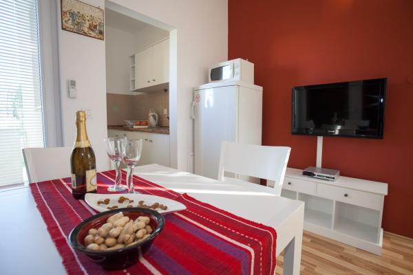 Moderně zařízené a plně vybavené apartmány se nacházejí 300 metrů od pláže. Nabízíme Vám tři apartmány, každý s kompletním kuchyňským nádobím a ručníky, stejně jako gril. Apartmány mají také satelitní TV, klimatizaci a Wi-Fi. Všechny balkony mají výhled do zahrady. Zajišťujeme parkování vašich vozidel. Majitelé apartmánů jsou vám k dispozici pro případné dotazy a rady během vašeho pobytu.
