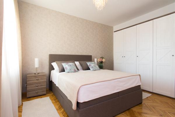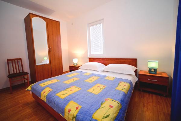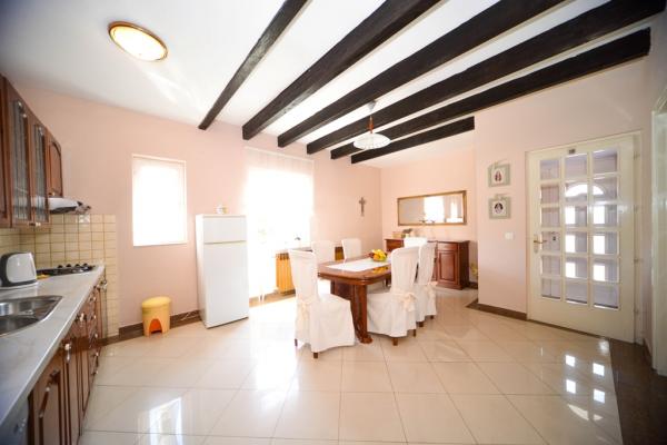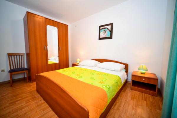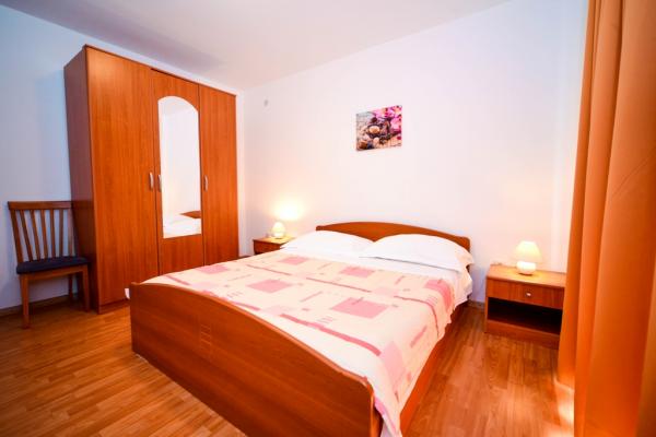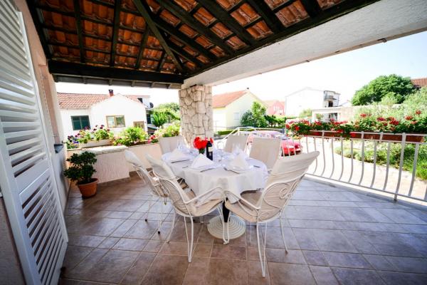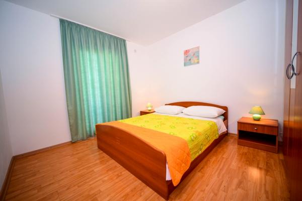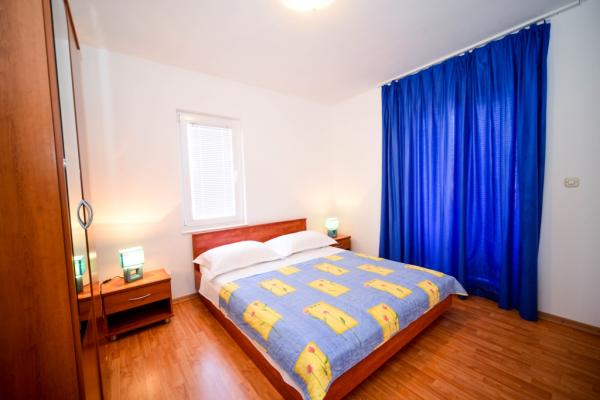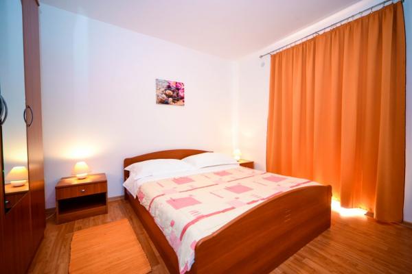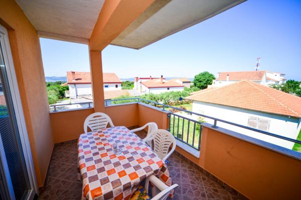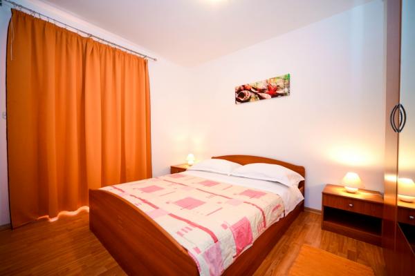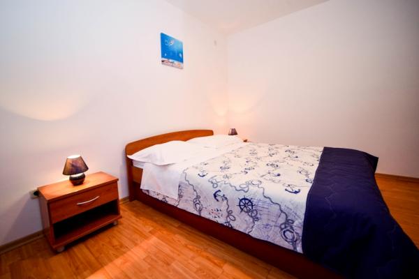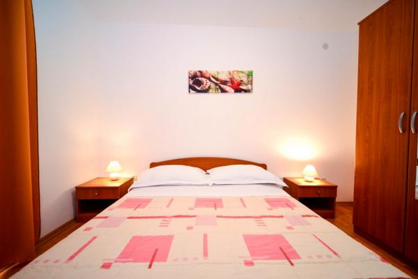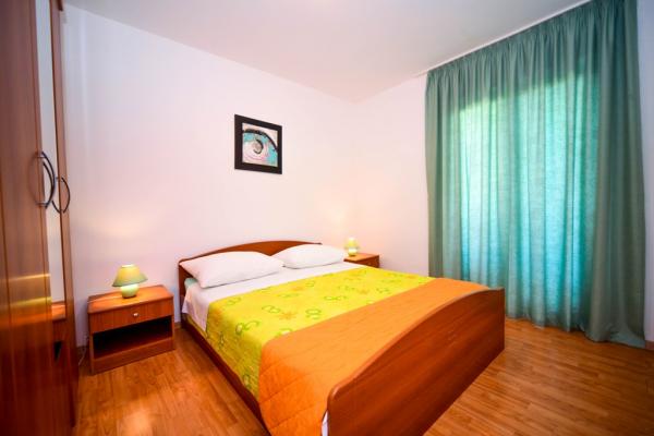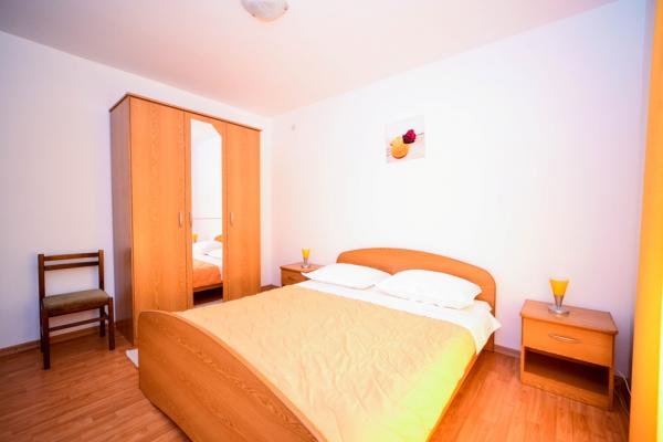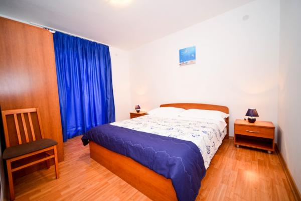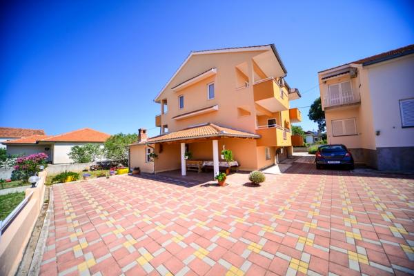 Okouzlující a nově zrekonstruované apartmány v Biogradu v klidné části města 6.month 45 EUR / noc pro 4-5 osob 7. a 8.mjesec 60eur/noć pro 4-5 osob Tato nemovitost má prostorné 4-ložnicových apartmánů, každý apartmán má 50m2 + balkon + terasa. Dva apartmány jsou v prvním patře a dva ve 2. patře s výhledem na moře. Každý apartmán má dvě ložnice s manželskou postelí, koupelna, jídelna, plně vybavená kuchyň, balkon s přístupem z ložnice a velkou terasu, na které se vynořuje z ložnice a kuchyně s jídelnou. K dispozici je možnost přistýlky, takže byt může ubytovat až 5 osob. Parkování je obklopen plotem v přední části domu. Každý návštěvník má své vlastní parkoviště. V zahradě je gril / krb a venkovní terasa s možností použití pro všechny hosty. Nejbližší pláž je Bosa, oblázková pláž 10-15min chůze.
