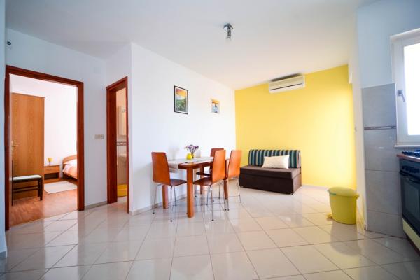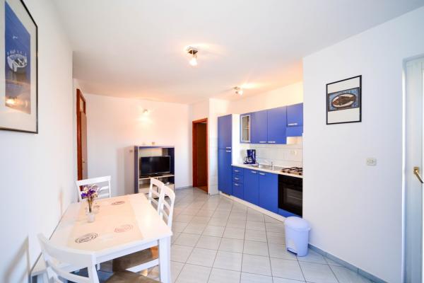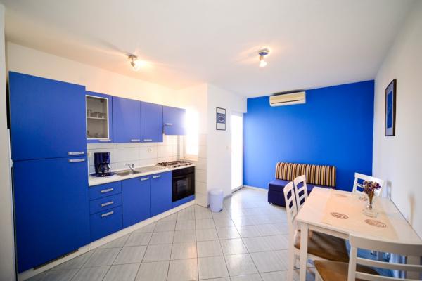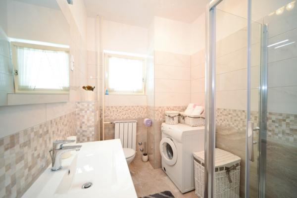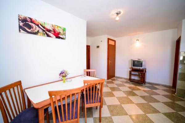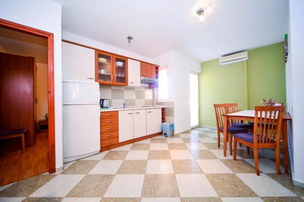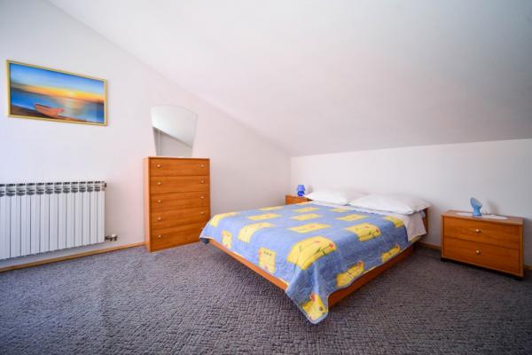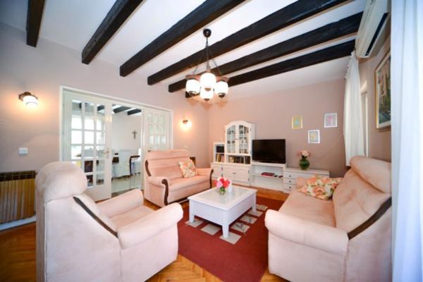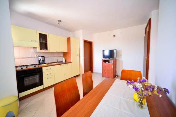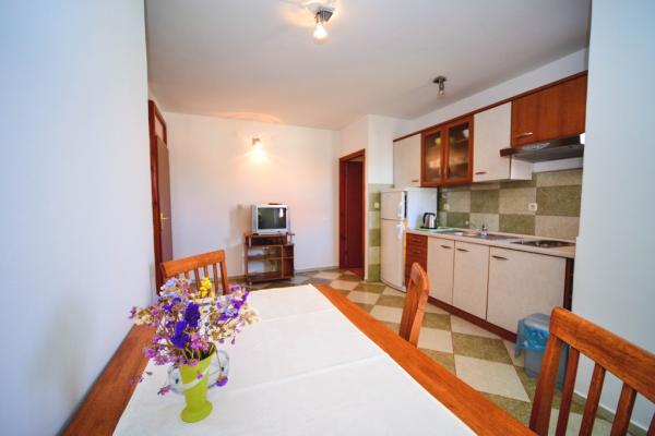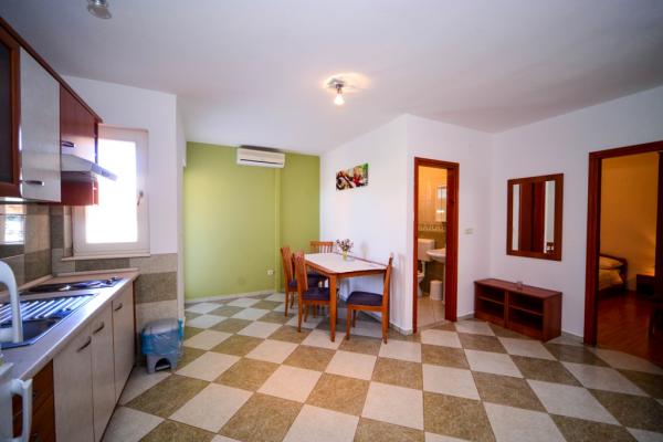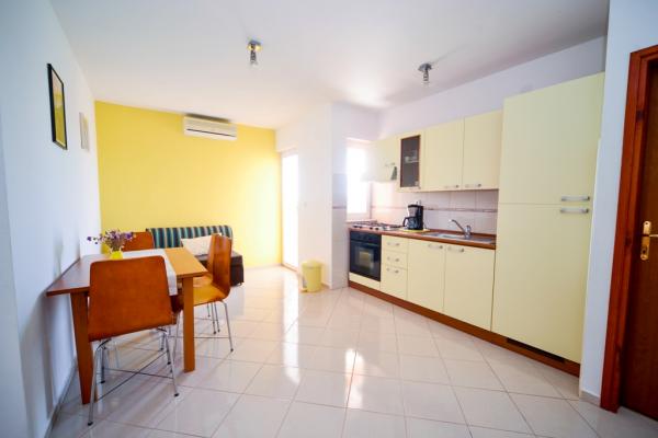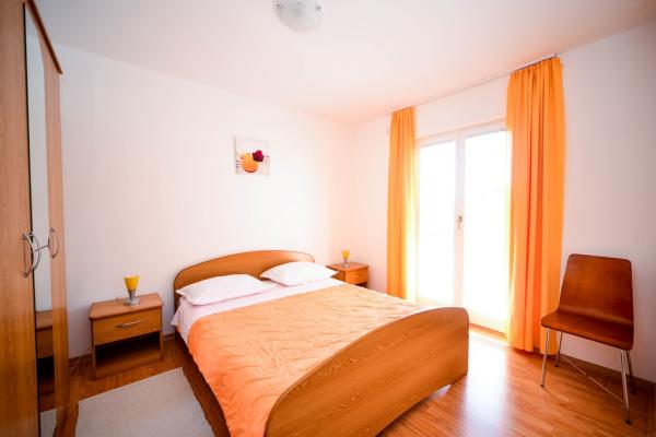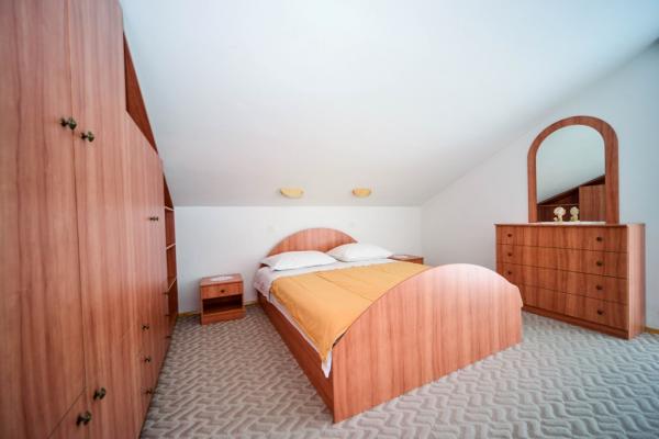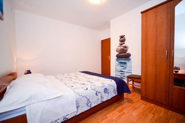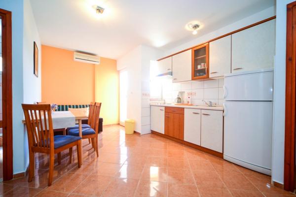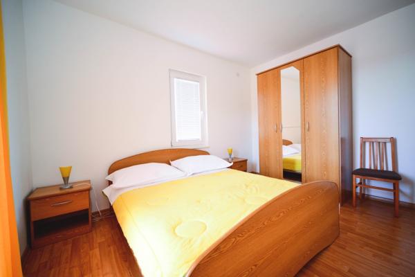 Okouzlující a nově zrekonstruované apartmány v Biogradu v klidné části města 6.month 45 EUR / noc pro 4-5 osob 7. a 8.mjesec 60eur/noć pro 4-5 osob Tato nemovitost má prostorné 4-ložnicových apartmánů, každý apartmán má 50m2 + balkon + terasa. Dva apartmány jsou v prvním patře a dva ve 2. patře s výhledem na moře. Každý apartmán má dvě ložnice s manželskou postelí, koupelna, jídelna, plně vybavená kuchyň, balkon s přístupem z ložnice a velkou terasu, na které se vynořuje z ložnice a kuchyně s jídelnou. K dispozici je možnost přistýlky, takže byt může ubytovat až 5 osob. Parkování je obklopen plotem v přední části domu. Každý návštěvník má své vlastní parkoviště. V zahradě je gril / krb a venkovní terasa s možností použití pro všechny hosty. Nejbližší pláž je Bosa, oblázková pláž 10-15min chůze.