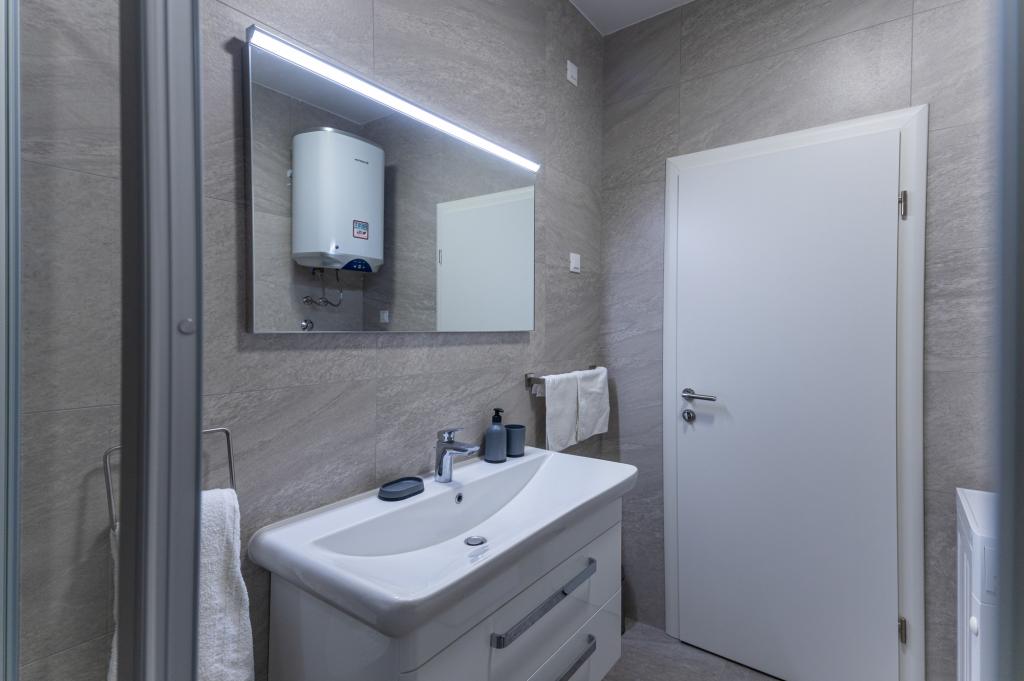 Moderně vybavený apartmán v klidné části města, pouhých 60 metrů od hlavní městské pláže Dražica a vodního centra Ilirija (bazén). Byt byl postaven v roce 2018, každý pokoj má vlastní moderní koupelnu se sprchovým koutem. V bytě je také pračka a ve společném prostoru dvora je velký pohodlný gril. Parkování je na společném dvoře, který je oplocený. Máme další dva apartmány na adrese Prominska 1. a poskytujeme bezplatné parkování na adrese Tina Ujevića 37. https://www.apartmanija.hr/apartmani/biograd-na-moru/apartmani-lu-i-lu/32186