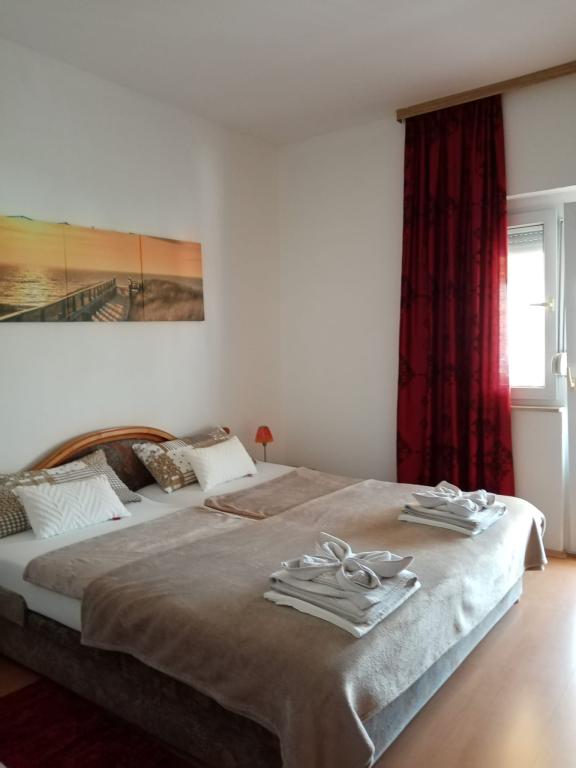 Apartmány se nacházejí v prvním patře rodinného domu, v klidné části města. 500 m od pláže a 700 m od centra města, v blízkosti borového lesa a tenisového centra. Parkování je ve dvoře domu ve stínu. Každý den je k dispozici terasa s grilem. Ve městě a okolí jsou k dispozici různé sportovní, rekreační a rodinné aktivity.