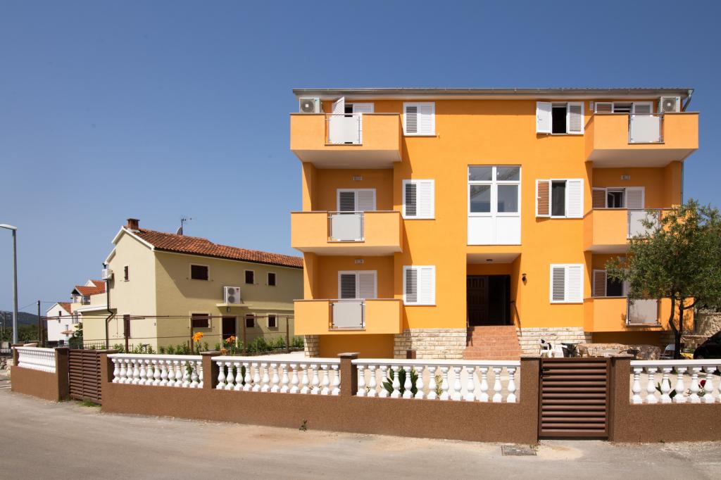 Apartmány Jadran se nacházejí v klidném apartmánovém komplexu v Biogradu na Moru Kumenat, vzdáleném od centra města, vedle turistického kempu obklopeného borovými lesy. Do centra města se dostanete 10minutovou procházkou po promenádě podél moře. Vzdálenost od stejnojmenné pláže Kumenat je asi 100 metrů a od druhé písečné pláže Soline asi 300 metrů. Apartmány se nacházejí ve druhém a třetím patře rodinného domu s výhledem na moře a ostrovy, o celkové rozloze 65 m2 každý apartmán, skládající se ze dvou samostatných pokojů s lůžky a přistýlkami a dalšího pokoje se dvěma lůžky, kuchyně s obývacím pokojem, chodby, koupelny a dvou teras. Každý apartmán má 2 pokoje a jednu přistýlku, takže ubytování je vhodné pro 5 osob, a dvě terasy v přední a zadní části domu, kde si můžete užívat a relaxovat při ranním štěbetání ptáků a kochat se výhledem na moře a ostrovy a romantickými západy slunce. Počet nocí závisí na výběru hostů, ceník je k dispozici kliknutím na tlačítko ceník. Vítejte!