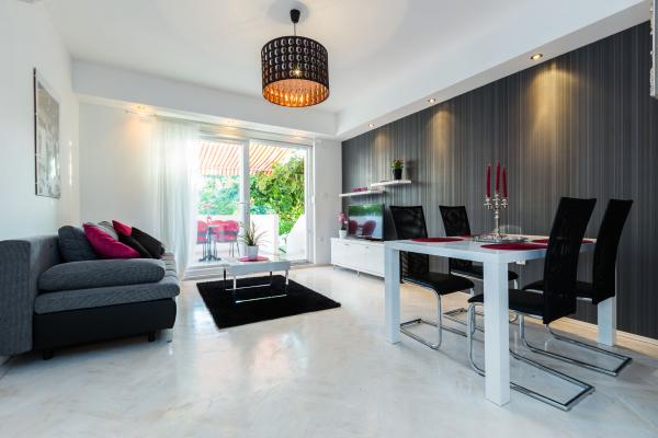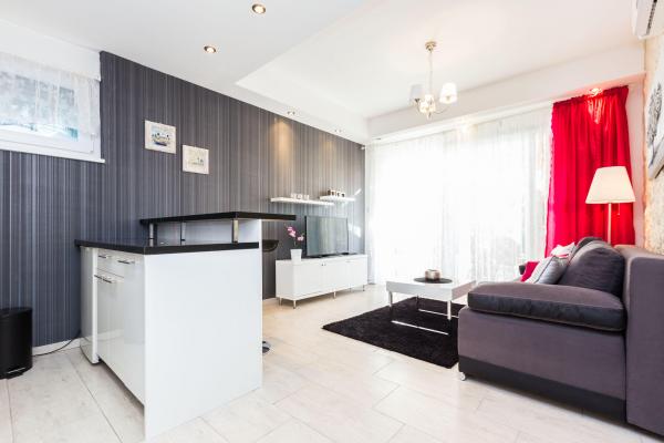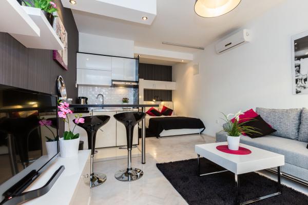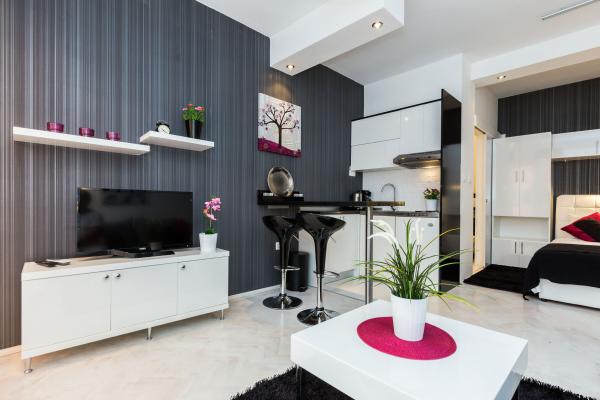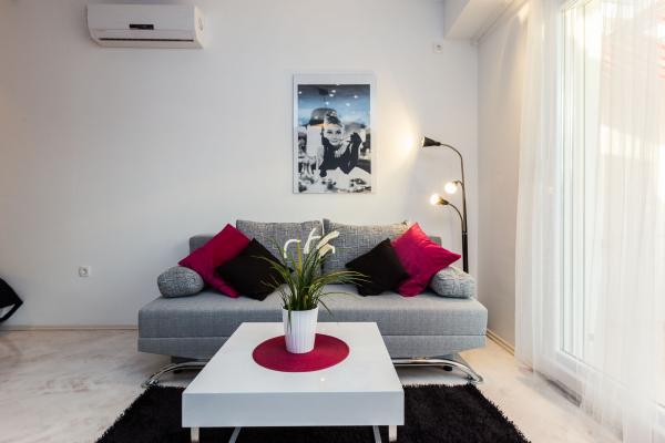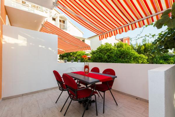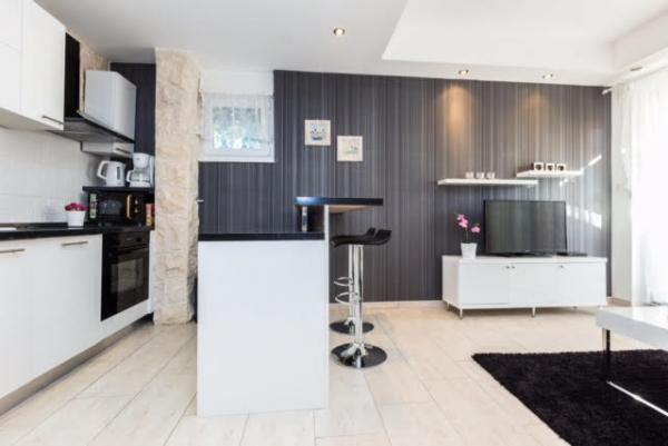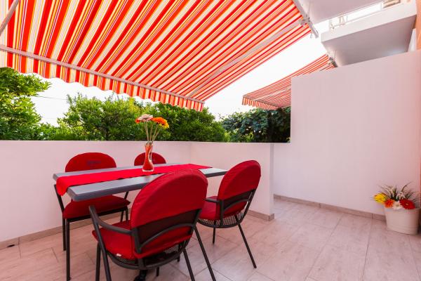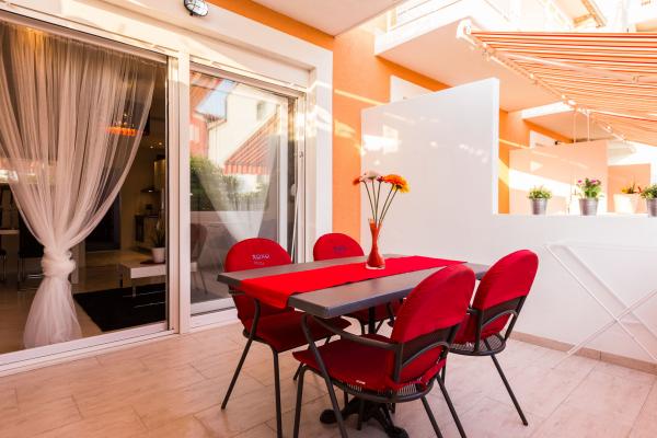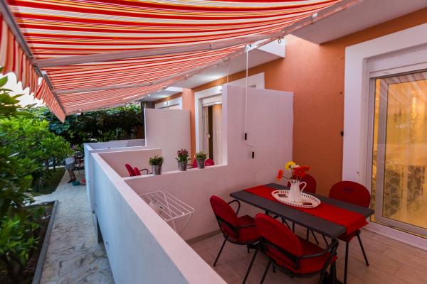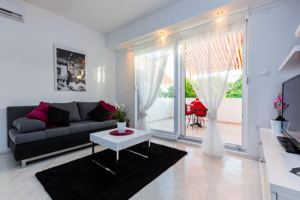 Luxusní apartmány v blízkosti centra města, který se nachází 7 minut od pláže a 10 minut chůze od starého města. Zcela nový a plně vybavené, každý apartmán má samostatný vchod a terasu, kde si můžete odpočinout v teplých letních nocí. Jsou obklopeny krásnou zahradou se stromy, pomeranče a citrony. Přírodní stín poskytuje Loznica kiwi, pod kterou je houpačka, kde si můžete vychutnat např. Osvěžujícím nápojem. Čerstvé ryby mohou péct na gril v zahradě a používat tabulku v zahradním altánu. Dům je situován tak, že jste se blíží, a přesto je oázou klidu, který vám umožní odpočinek a relaxaci. 70 m od domu je supermarket a Marina, a 200 m nákupní centrum. Každý apartmán má parkování, klimatizace, satelitní TV, Wi-Fi, internet, trezor, mikrovlnná trouba, rychlovarná konvice, kávovar, toustovač, mixér, žehlička, žehlící žehlička, vysoušeč vlasů a tak dále. Každý host pobyt v našich apartmánech 7 dní a déle dostane zdarma večeře v naší restauraci Roko a všechny ostatní dny 10% slevou, stejně jako všechny naše hosty.