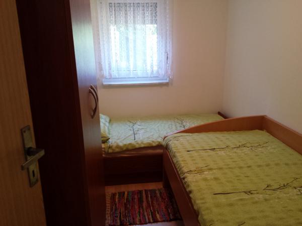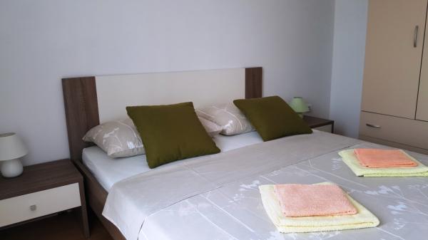 Nabízíme k pronájmu krásný a nově zrekonstruované apartmány v Biogradu v klidné části města. Součástí objektu je třípokojových prostorných apartmánů. Každý apartmán má rozlohu 50 m2 a navíc velkou terasu. Apartmán Marina má krytou terasu a nachází se v přízemí. Obsahuje ložnice s velkou manželskou postelí, malý pokoj se dvěma lůžky, předsíň, koupelna, kuchyň a velká jídelna s podlézat postel. Z jídelny a terasa 12 m2. Byt Anja se nachází v prvním patře a má dvě ložnice, jídelna, kuchyň, předsíň, koupelna a velká sluneční terasa. Parkování pro auta je v oploceném dvoře s možností parkování ve stínu. Každý návštěvník má své vlastní parkoviště. Nejbližší pláž je vzdálena Bošana, oblázková pláž 15 min. Ve vzdálenosti 2, 4 km je nově otevřený zábavní park FANPARKBIOGRAD. Cena a obchodovatelné. Vítejte na byty Marina !!!