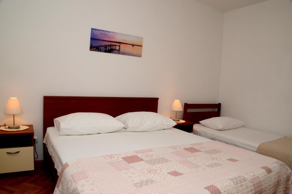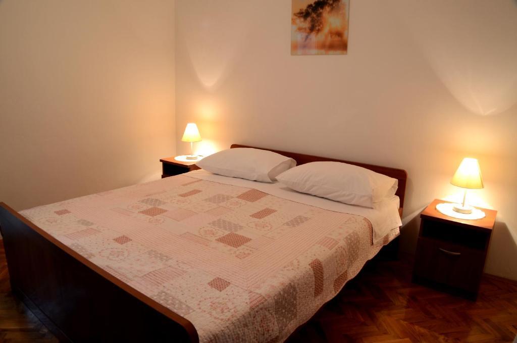 Bydleli jsme v bytě Anteho a Marije, skvělých hostitelů. Byt se nachází v klidné oblasti a je opravdu pohodlný, má tři ložnice a dvě koupelny (což je u rekreačních apartmánů neobvyklé). Ložnice jsou prostorné s pohodlnými postelemi. Je v prvním patře pravého dalmatského domu obloženého kamenem, ne v jednom z těch ohavných kostek ze skla, oceli a betonu, které teď staví! Má velkou zahradu plnou rostlin, která slouží také jako stinné parkoviště. Vybavení je takové, jak je popsáno, a je dobře zásobené. Jediným negativem, pokud vůbec nějakým, je přístup k bráně: Já jsem se dovnitř dostal se svou Lancií Musa bez problémů, ale náš kamarád se sedmimístným autem měl zpočátku trochu potíže, ale po druhém pokusu, s opatrností, se dovnitř snadno dostal. Ante je však ochotný a vysvětluje triky pro přístup. Přístup na pláž je rychlý a snadný. Já, který mám potíže s chůzí, jsem to dostával 10 minut, zatímco našim přátelům to trvalo polovinu času. Nevím, co dalšího bych měl dodat, co už není zmíněno v popisu, kromě toho, že vřele doporučuji dům rodiny Merleových. Díky Mariji a Antemu.