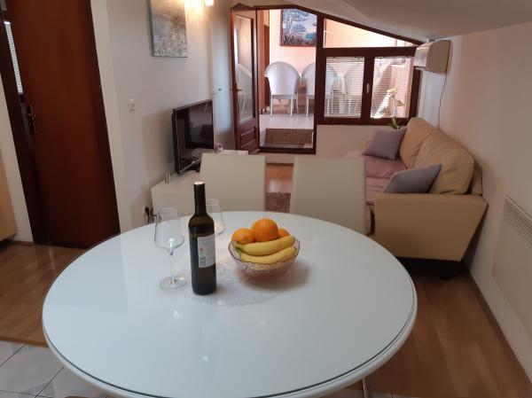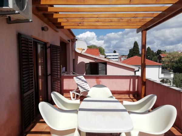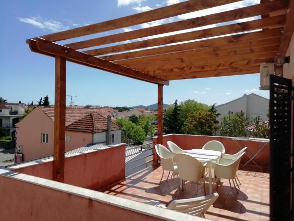 Plně zařízené apartmány s výhledem na moře, pouhých 10 minut chůze do centra města a 5 minut na pláž. Jsou umístěny v prvním patře a mají parkování. Tyto apartmány mají velké terasy, že letní prázdniny ještě příjemnější.