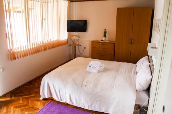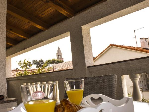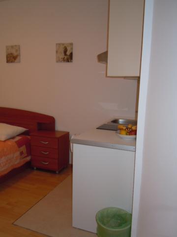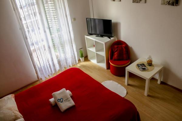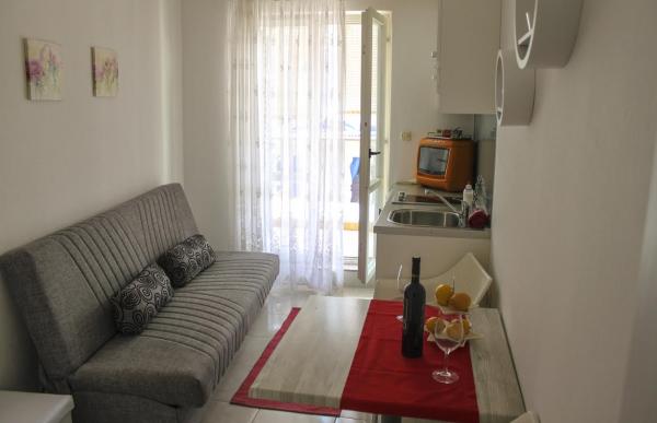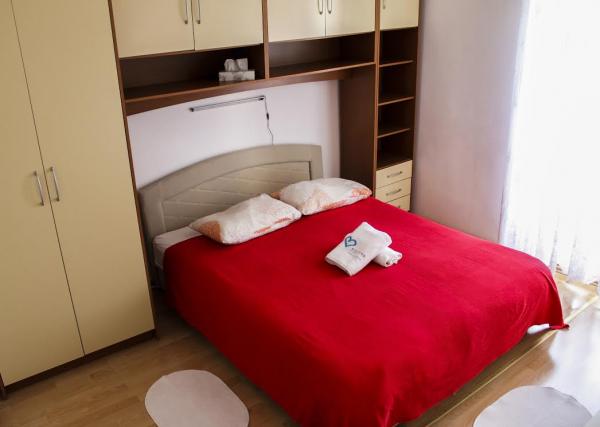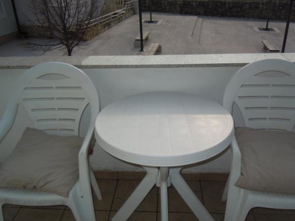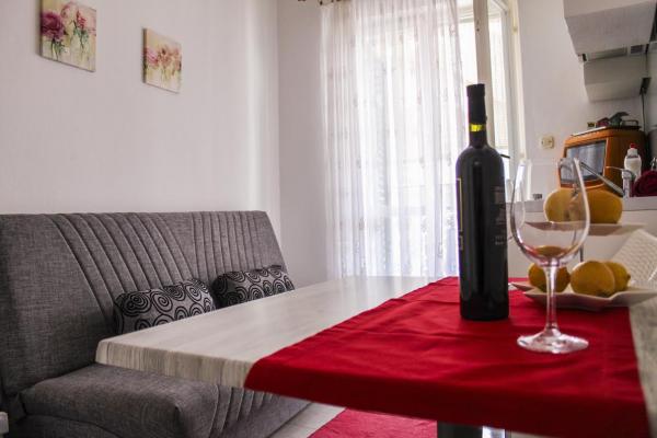 Byt se nachází v centru města ve velmi klidné oblasti pouhých 10 metrů od moře. Byt je plně vybaven. Nachází se jen pár minut chůze od moře od oblázkové pláže Drazica. Parkování je zajištěno. Ideální pro tři dospělé nebo manželský pár se dvěma dětmi. V prostorném pokoji je rozkládací pohovka. Má velkou krytou terasu s výhledem na moře, kuchyň a koupelnu. Má Wi-Fi a klimatizaci. Nejkrásnější částí bytu je velký balkon s výhledem na malé náměstí před domem a mořem.