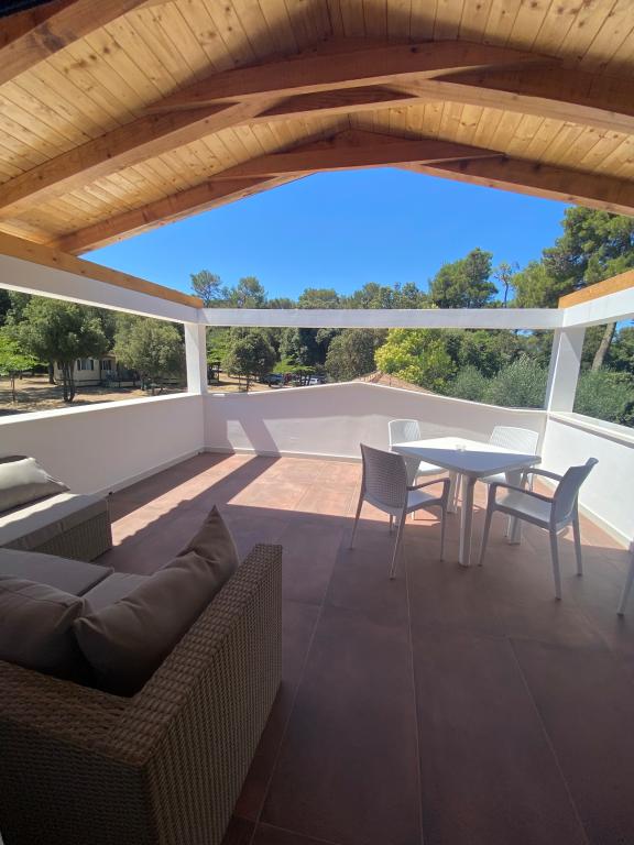 Camping Biograd se nachází ve stejnojmenném městě, pouhých 300 m od písečné a oblázkové pláže a do centra města je to jen pár minut chůze. V bezprostřední blízkosti kempu jsou tenisové kurty. V kempu jsou 3 apartmány (s 1 a 2 pokoji). Každý apartmán má plně vybavenou kuchyň (s nádobím), 1 nebo 2 pokoje s manželskou postelí (ložní prádlo), obývací pokoj s velkou rozkládací pohovkou (pro dvě osoby), 1 nebo 2 koupelny (WC, sprcha a umyvadlo), klimatizaci TV , WIFI. V kempu jsou pohodlné a moderní mobilní domy. Jedná se o samostatné, praktické a funkční jednotky s klimatizací a TV. Skládají se z obývacího pokoje s kuchyňským koutem, dvou ložnic (jedna s manželskou postelí a druhá se 2 samostatnými lůžky) , koupelny (WC, sprcha, umyvadlo), terasy s baldachýnem. Apartmány a mobilní domy jsou určeny výhradně pro dovolenou, protože se nacházejí v klidném borovém lese v městské části města a nejsou určeny pro večírky a párty.