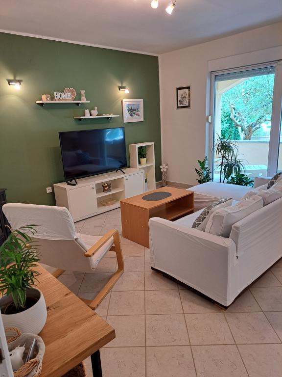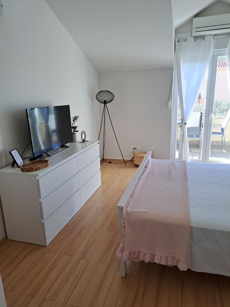 Pobytová taxa je v ceně. Doklad o potvrzení rezervace při rezervaciApartmán je ve skvělé lokalitě, pláž je opravdu blízko. Jeden obchod je velmi blízko, jinak je to 15-20 minut chůze a jste v centru města, kde je k dispozici vše, trh, pekárna, obchody, restaurace... Před domem je velké parkoviště ve stínu olivovníků. Apartmán je extrémně čistý, prostorný, s velmi dobrým uspořádáním, dobře vybavený vším potřebným, zejména kuchyní. Velký balkon s krásným výhledem na olivovníky a moře. Pohodlná postel. Všechno je naživo ještě krásnější než na obrázcích. Hostitelé jsou přátelští a komunikativní. Vynikající!