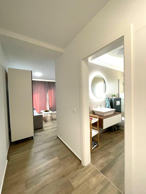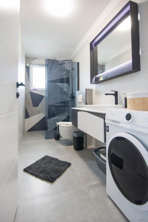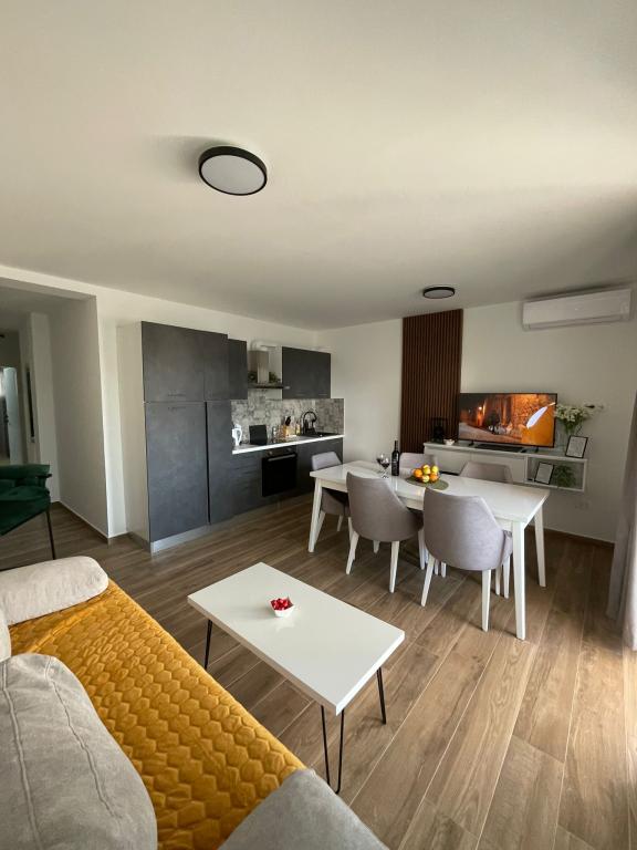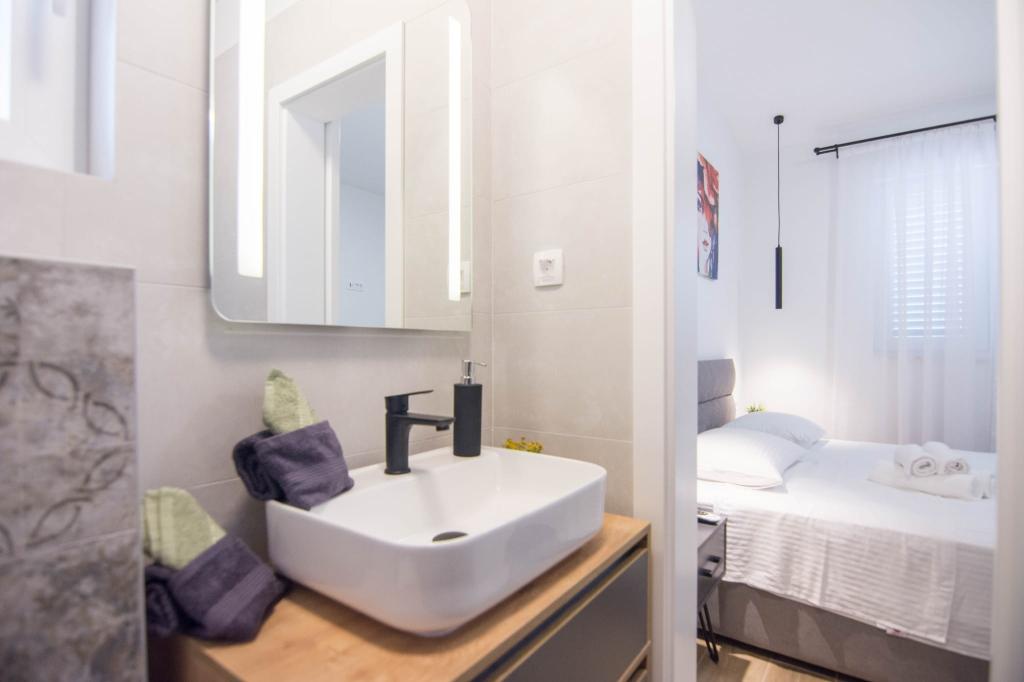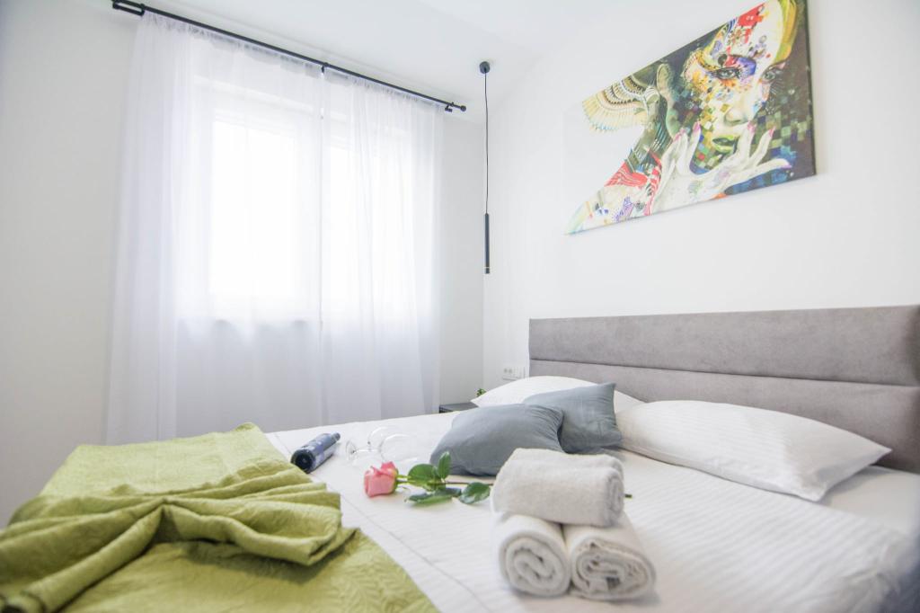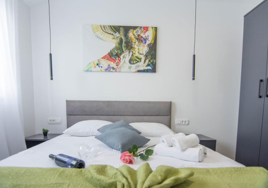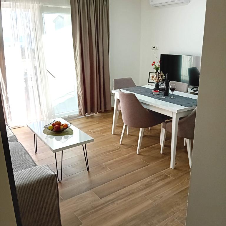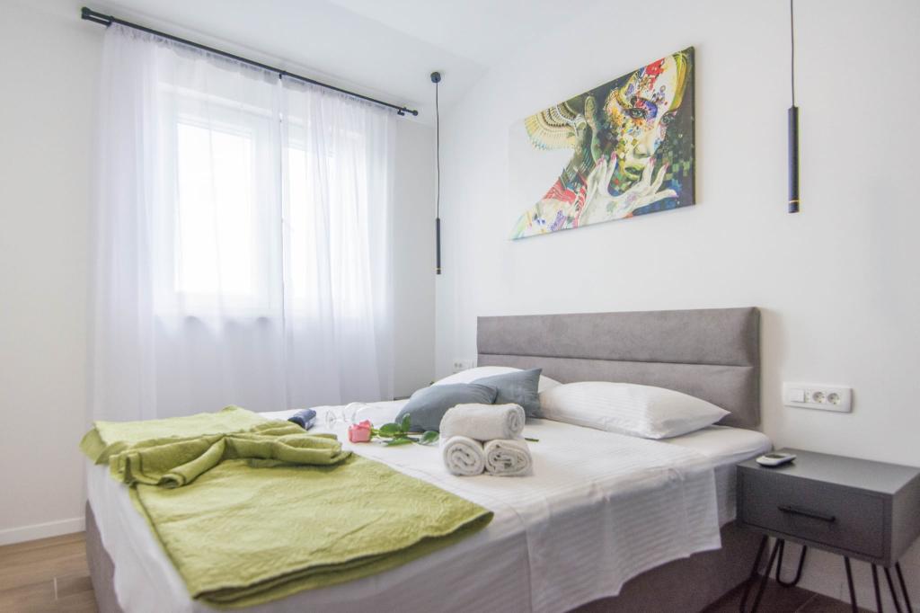 Nově zařízený apartmán v klidné části města, druhá řada od moře.Pláž 100 metrů, centrum 10 minut chůze.Hlídané parkování ve dvoře.