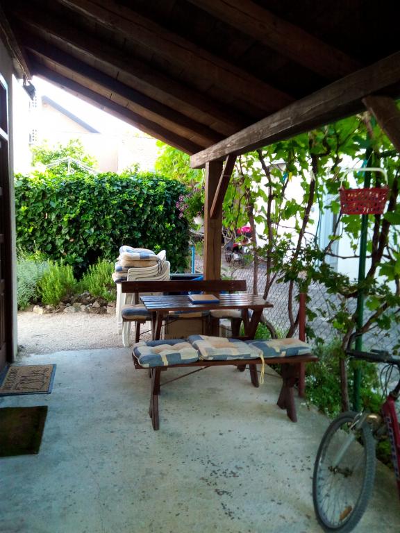 Na dvoře je zděný gril se stolem pro 8 osob, houpačkou a malým lavičkovým stolkem pro odpočinek a pití kávy. Hostitel je hostům neustále k dispozici, protože je neustále přítomen v budově, kde se apartmány nacházejí. Možnost vyzvednutí hostů na autobusovém nádraží, pokud přijedou autobusem.