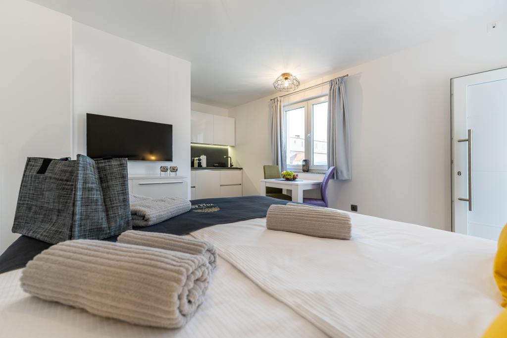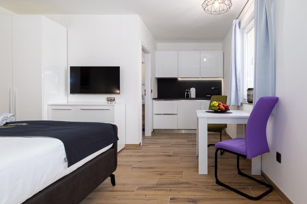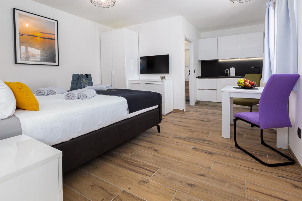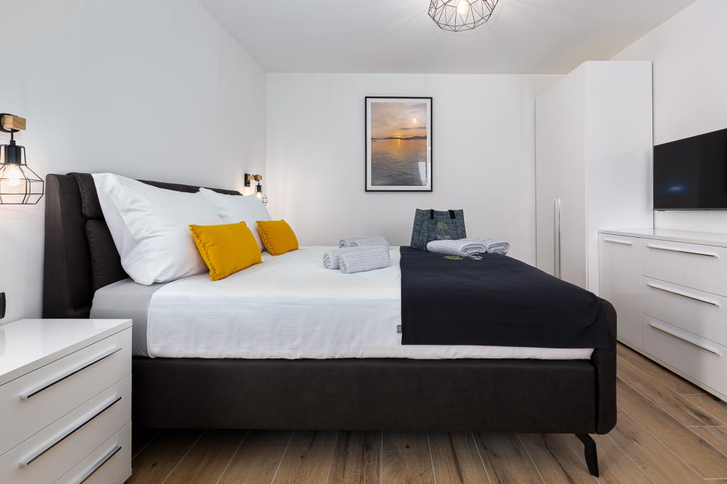 Zůstali jsme tam 7 dní, apartmány jsou 3 minuty chůze od centra města. Apartmány byly čisté, pěkně vybavené vším potřebným a milí hostitelé nám dokonce nechali vodu a pití. Jejich pohostinnost a vřelost předčily očekávání od turistického místa, jako je Biograd, a byli jsme mile překvapeni, jak milí byli. Doporučili nám několik restaurací, nabídli nám odvoz k vile a občas se na nás podívali. 10/10, doporučuji.