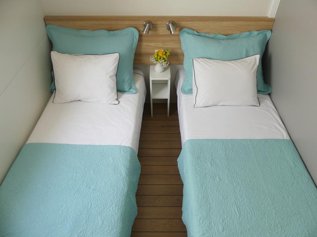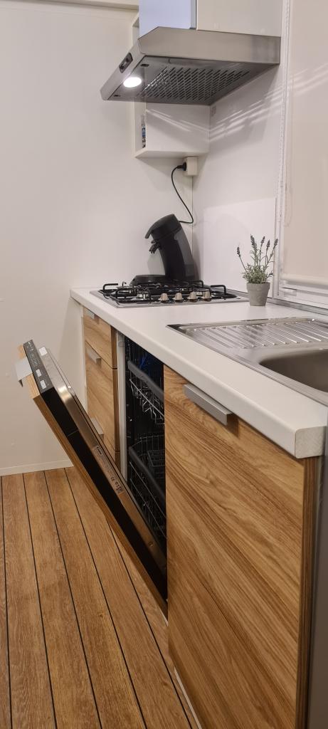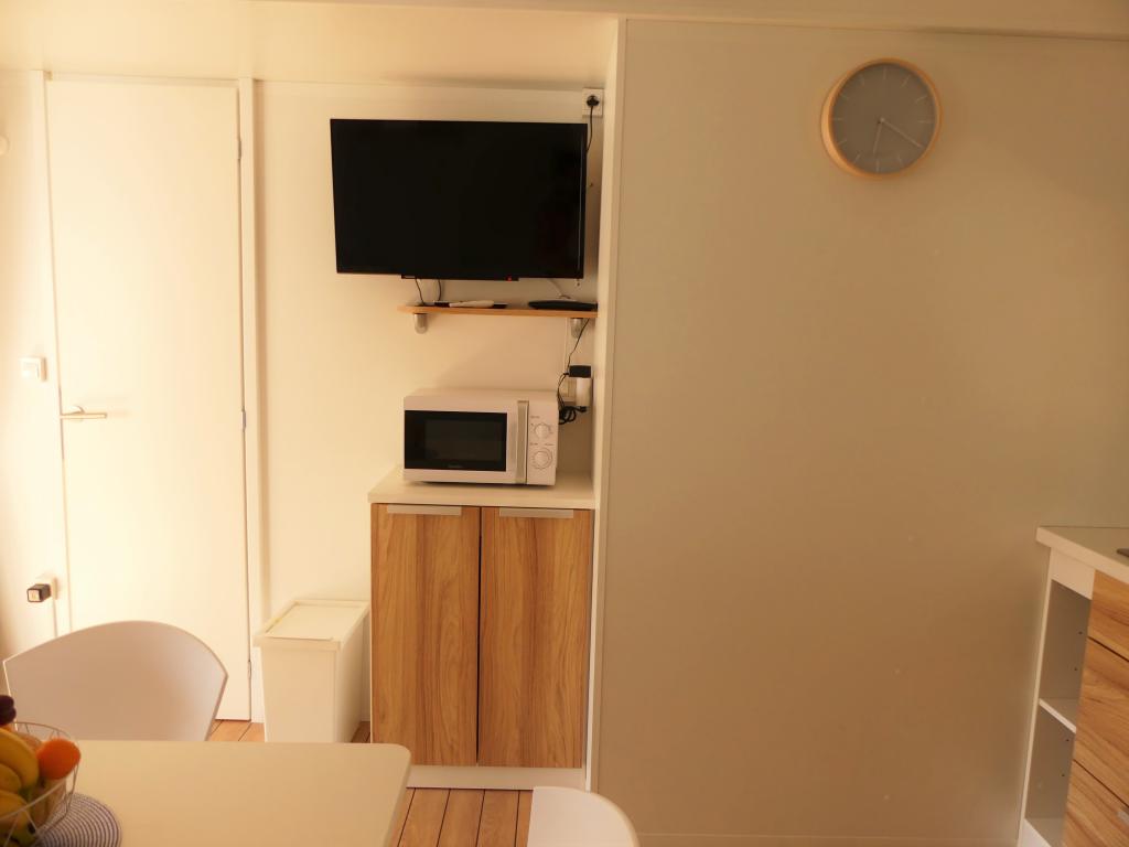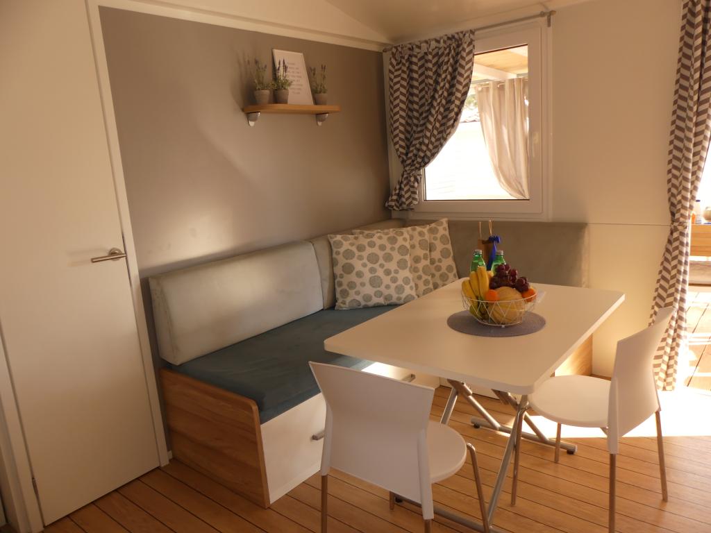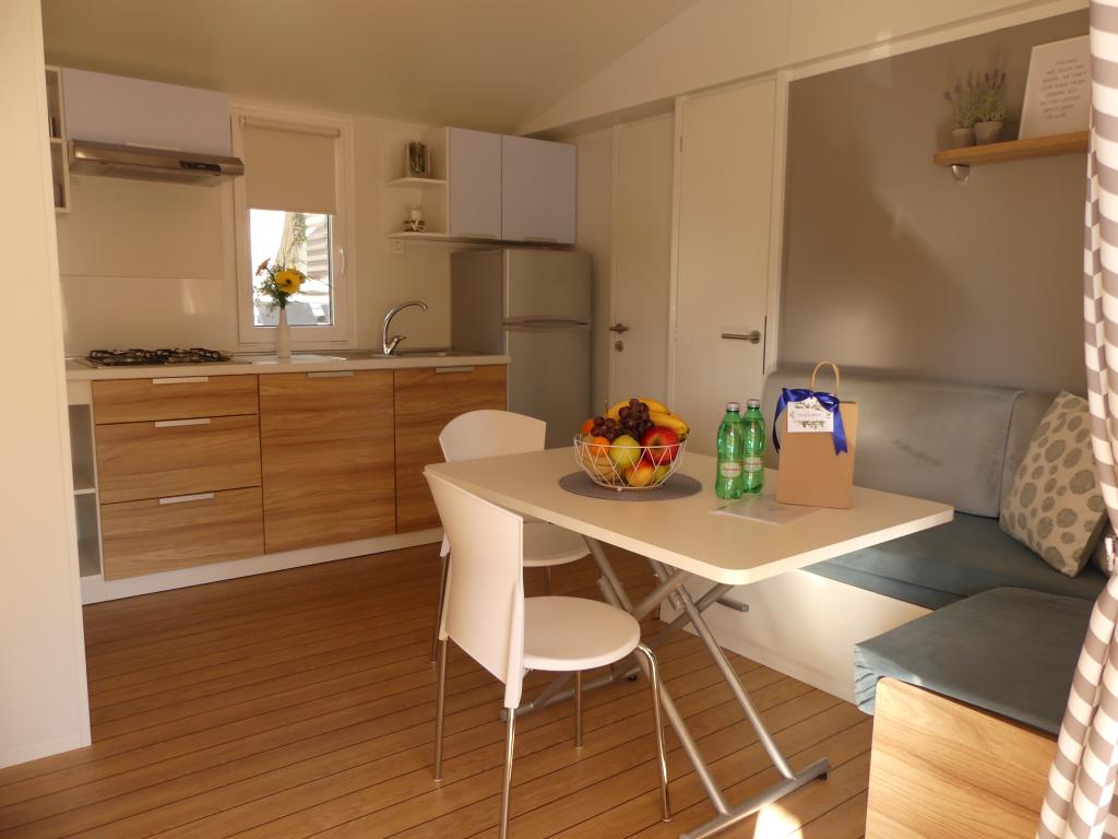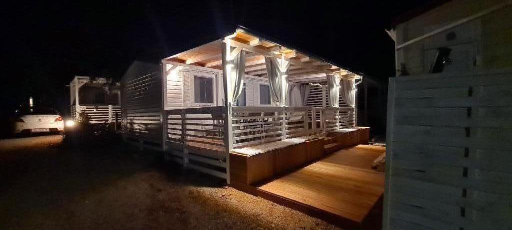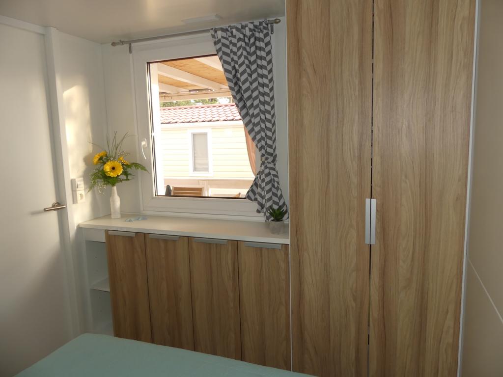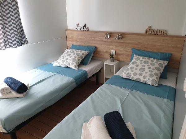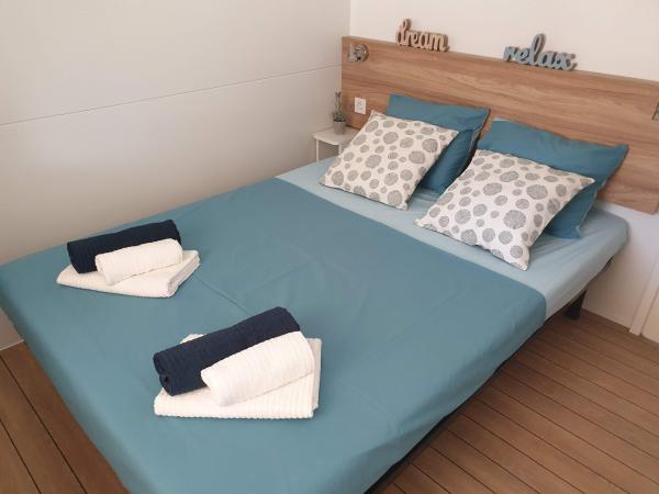 Blue Wave je nový, moderní a plně vybavený mobilní dům se dvěma ložnicemi (jedna s manželskou postelí a druhá se dvěma samostatnými lůžky), skříněmi, dvěma koupelnami se sprchovým koutem, obývacím pokojem s přistýlkou (135x180cm), plně vybavenou kuchyní s klimatizací a velkou terasou. Terasa je vybavena jídelním stolem, elektrickým grilem a dvěma pohodlnými lehátky. Bezdrátové připojení k internetu je k dispozici v celém objektu zdarma. Blue Wave se nachází v klidném borovém lese v kempu Soline v Biogradu na moru. Zařízení je 2-3 minuty chůze od pláže, kavárny a restaurace. V kempu jsou pračky a sušičky, bankomat, obchod, pekárna, dětské hřiště a vše, co potřebujete pro příjemný pobyt! V bezprostřední blízkosti kempu, asi 10 minut chůze po nově zrekonstruované promenádě podél moře, se nachází centrum Biogradu, které má různá zařízení, stejně jako přístav Kornati. Dalmaland Fun & Water Park je také nedaleko pro skvělou zábavu.