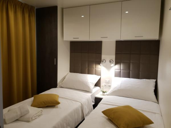 Tábor Dalmaris je nově otevřený areál, který od 1. června 2019 nabízí 4 luxusní kempy. Nachází se nedaleko od centra Biogradu na Moru, v srdci Dalmácie. Z prostorných teras (25 m2) budete mít výhled na moře a oblázkovou pláž jen 30 metrů od ubytování. Vynikající poloha kempu vám dává možnost prozkoumat krásné pobřeží a skryté zátoky a poznat krásné a rušné město a jeho noční život. Centrum města se nachází 1, 5 km od tábora Dalmaris. S krásným zeleným okolím a okouzlujícím pobřežím je to jedno z nejlepších míst v Chorvatsku. Pro ty, kteří hledají aktivity, ruch a krásu aktivní dovolené, se nachází pláž Soline. Aktivní rekreanti mohou využít různé sportovní zařízení na souši i na moři - tenis, potápění, volejbal, šlapadla a šlapadla. Dobře vybavený přístav, lékárna, kavárny a kluby se nacházejí v centru Biogradu u moře. Pošta: kempování. dalmaris @ gmail. com