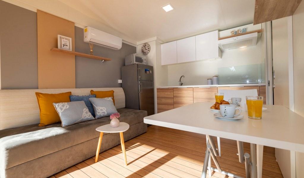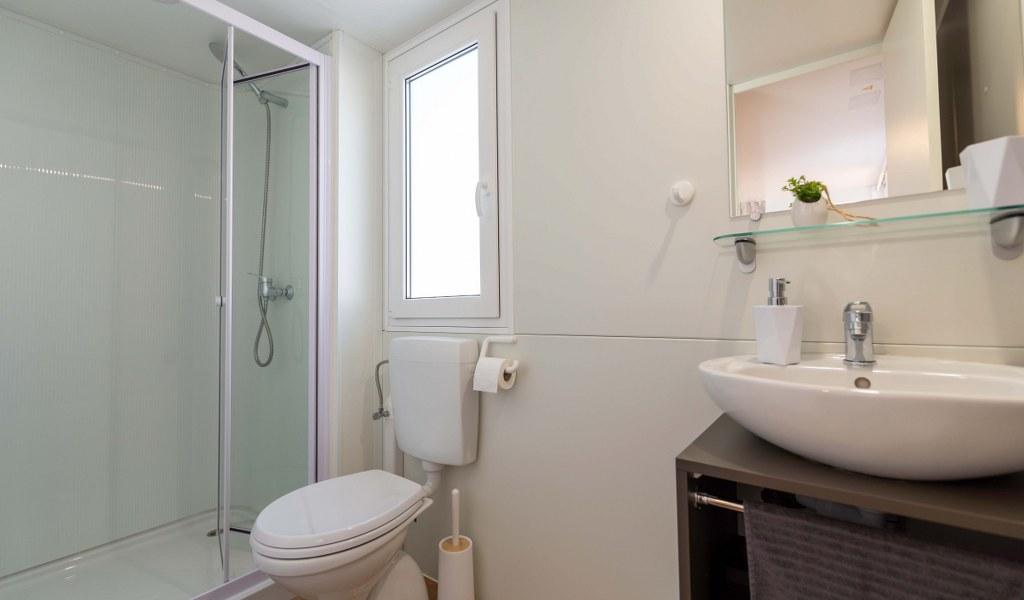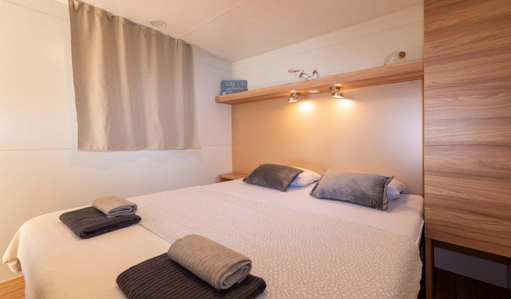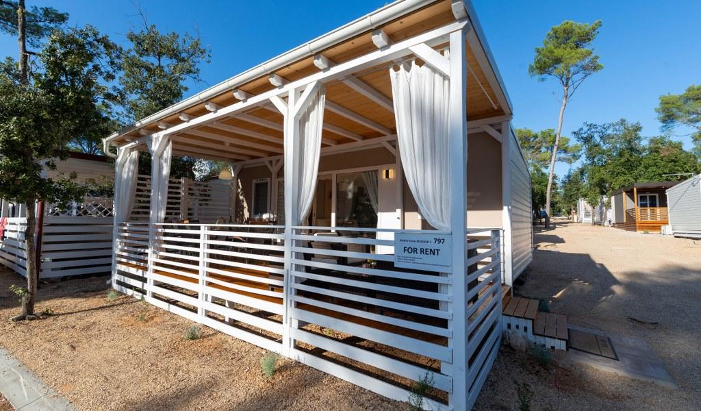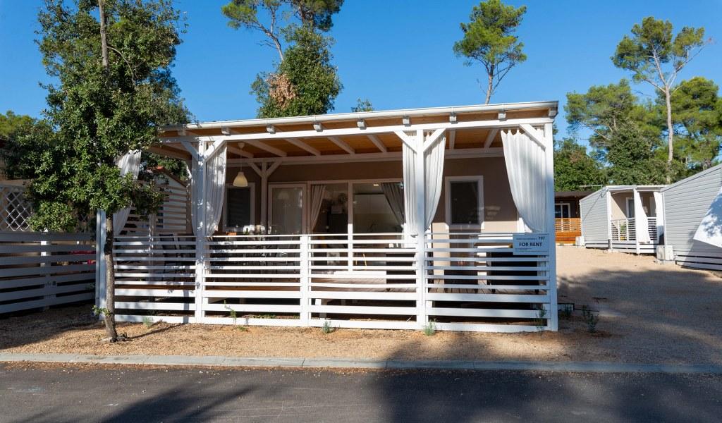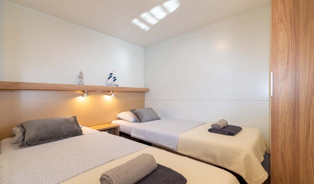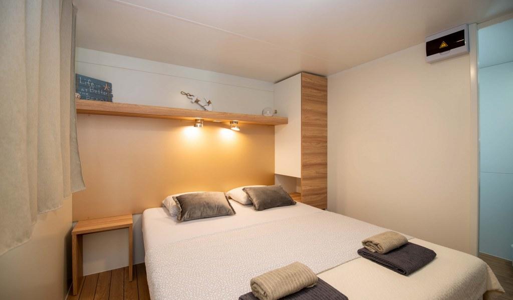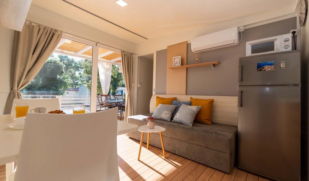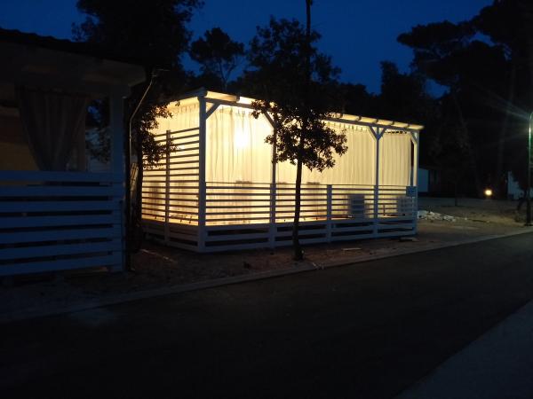 Nový, moderní a plně vybavený mobilní dům se dvěma pokoji, obývací pokoj s rozkládací pohovkou (135x180cm), plně vybavená kuchyň se satelitní TV, klimatizace, WIFI, mikrovlnná trouba, el. barbecue, malé domácí spotřebiče atd., DVA KOUPELNY a velká terasa 7, 5 x 3 metry, se nachází v borovém lese v kempu Soline v Biogradu na moru. Dům je 250 metrů od pláže, kavárny, restaurace a je zde dětské hřiště, pračky a sušičky, bankomat, obchod, pekařství a vše, co potřebujete pro pohodlný pobyt! V bezprostřední blízkosti kempu je asi 1500 metrů od centra Biogradu s různým vybavením a také přístav Kornati!