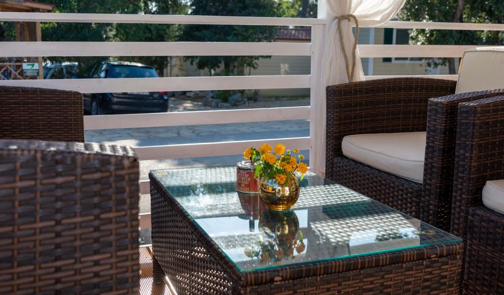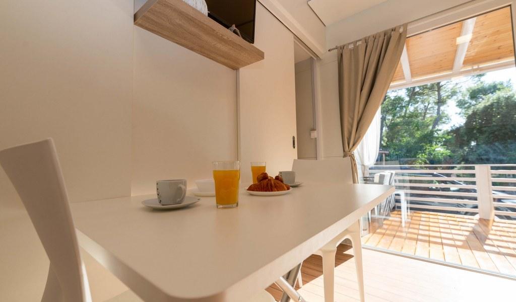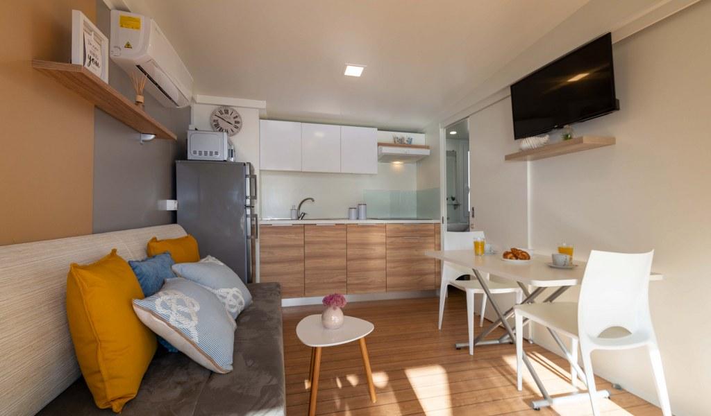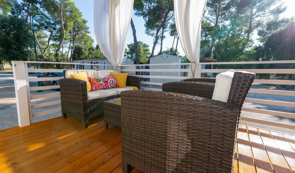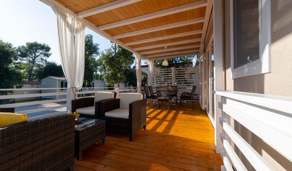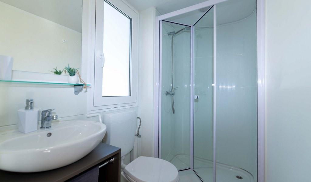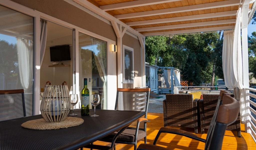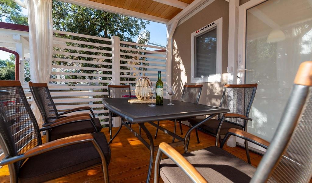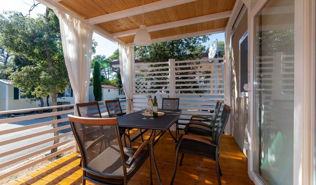 Nový, moderní a plně vybavený mobilní dům se dvěma pokoji, obývací pokoj s rozkládací pohovkou (135x180cm), plně vybavená kuchyň se satelitní TV, klimatizace, WIFI, mikrovlnná trouba, el. barbecue, malé domácí spotřebiče atd., DVA KOUPELNY a velká terasa 7, 5 x 3 metry, se nachází v borovém lese v kempu Soline v Biogradu na moru. Dům je 250 metrů od pláže, kavárny, restaurace a je zde dětské hřiště, pračky a sušičky, bankomat, obchod, pekařství a vše, co potřebujete pro pohodlný pobyt! V bezprostřední blízkosti kempu je asi 1500 metrů od centra Biogradu s různým vybavením a také přístav Kornati!