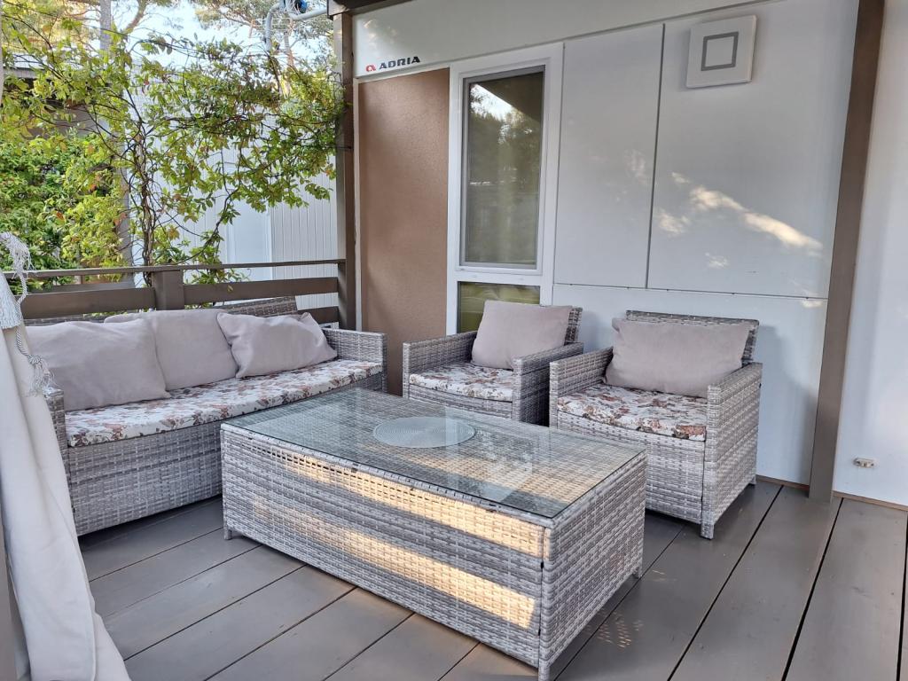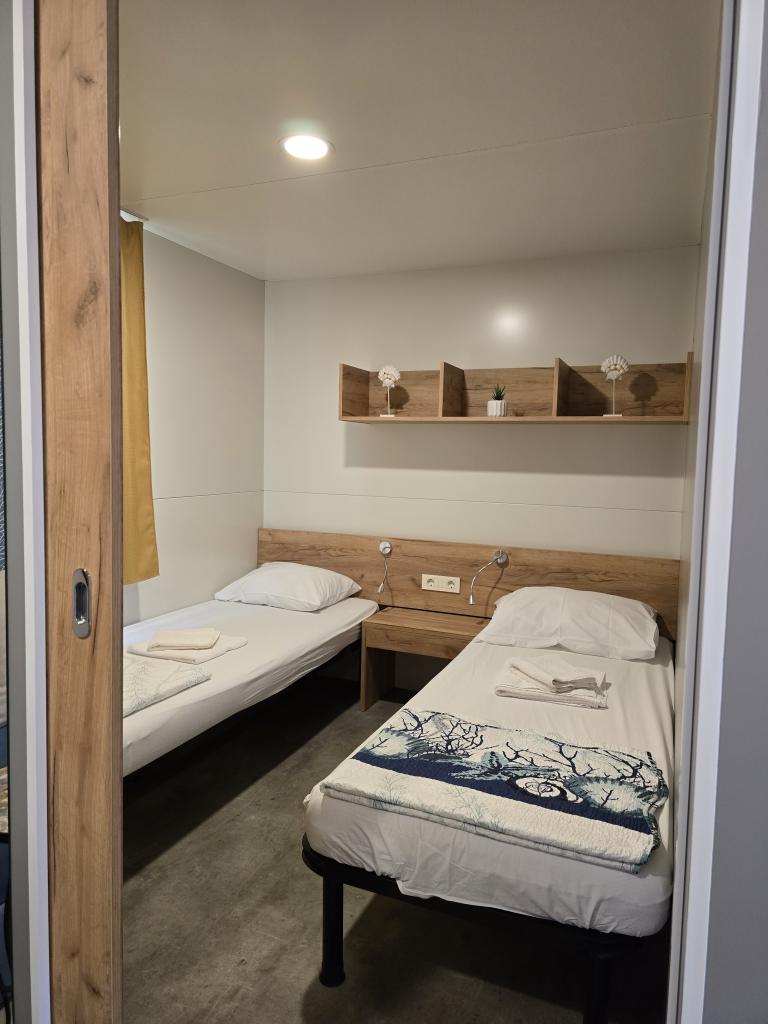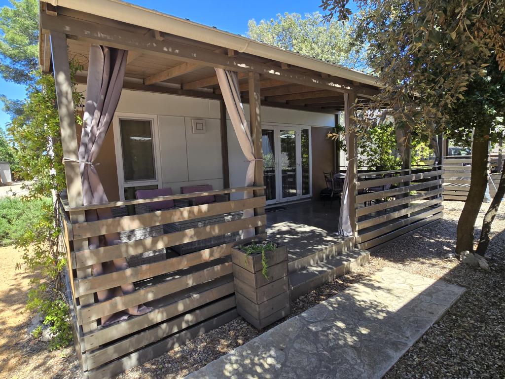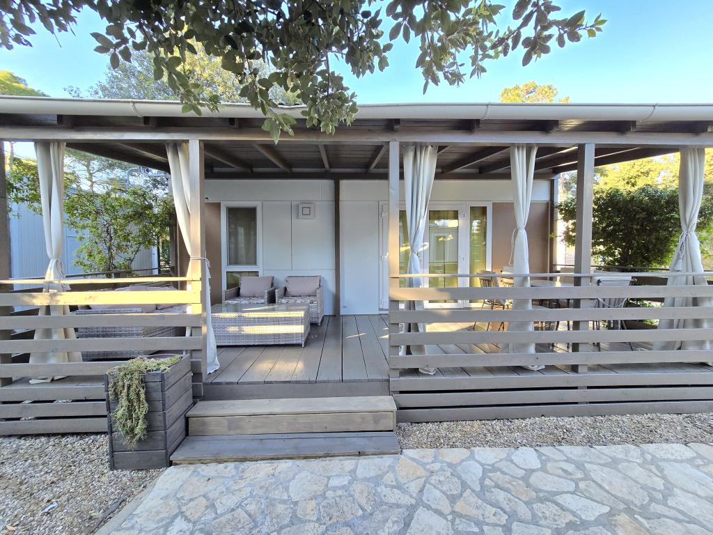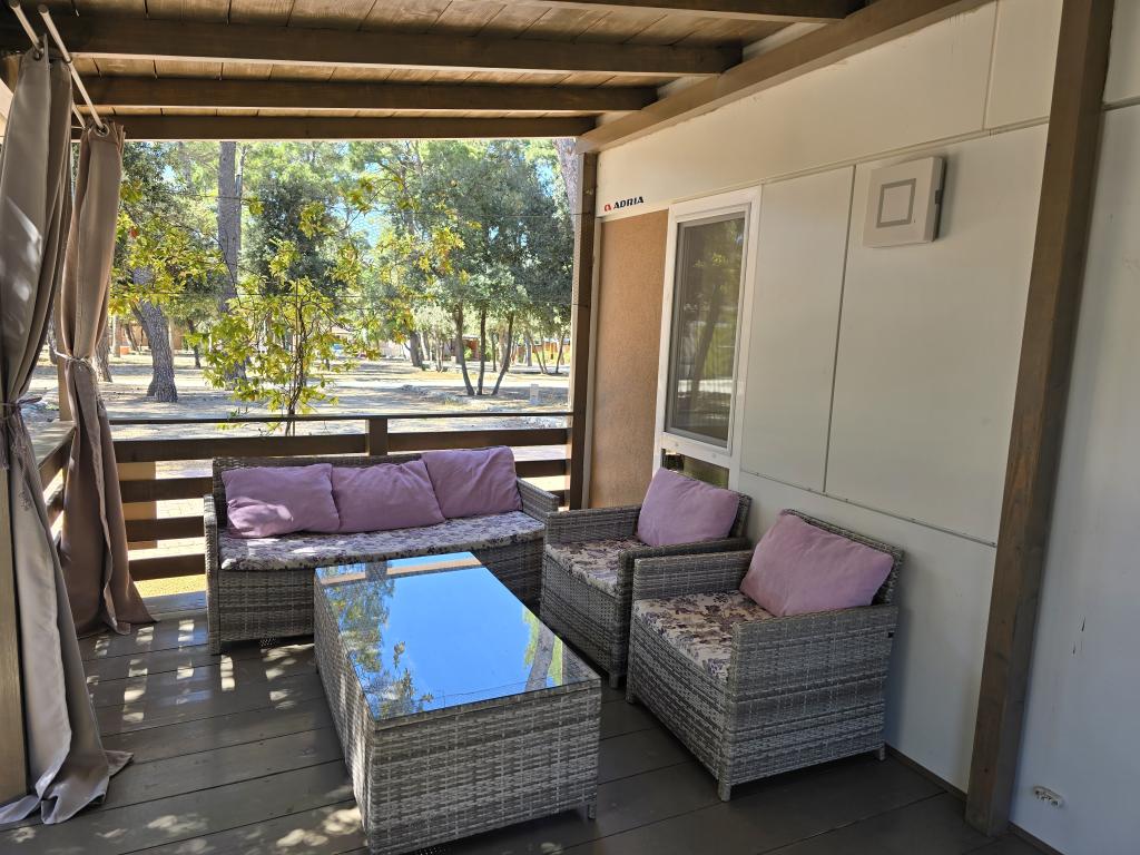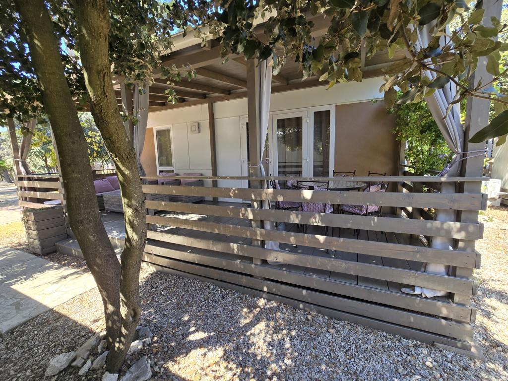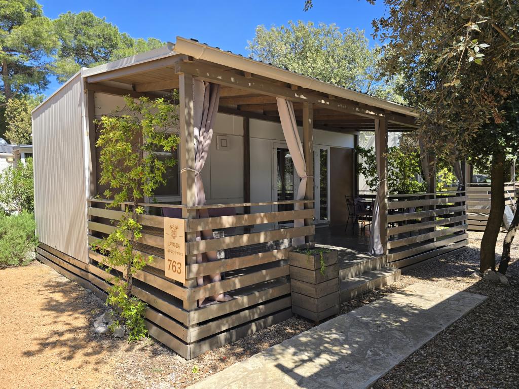 Plně vybavený mobilní dům o rozloze 30 m2 s velkou terasou a parkovacím místem. Nachází se v klidnější části kempu Soline, nedaleko od hluku restaurací a kaváren a pláže, a přesto dostatečně blízko.
